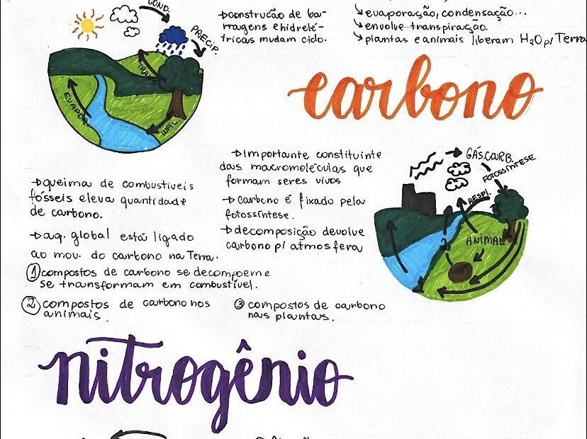 Compilação com os melhores mapas mentais, conceituais, infográficos, diagramas e resumos sobre ciclos biogeoquímicos.