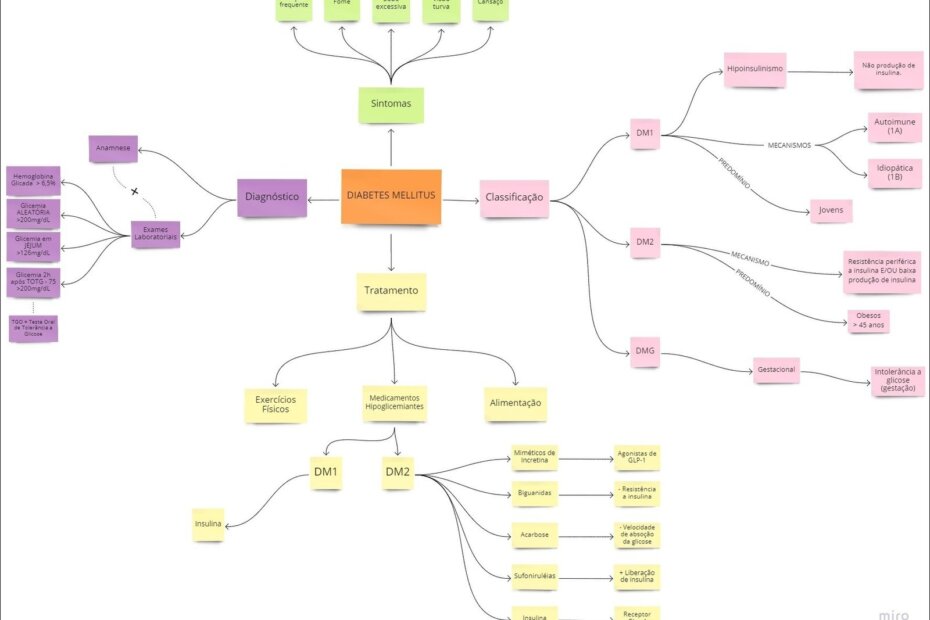 Compilação com os melhores mapas mentais, conceituais, infográficos, diagramas e resumos sobre diabetes.