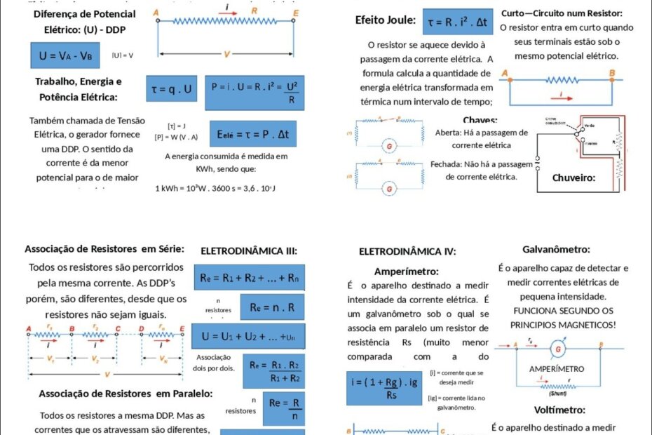 Compilação com os melhores mapas mentais, conceituais, infográficos, diagramas e resumos sobre eletrodinâmica.