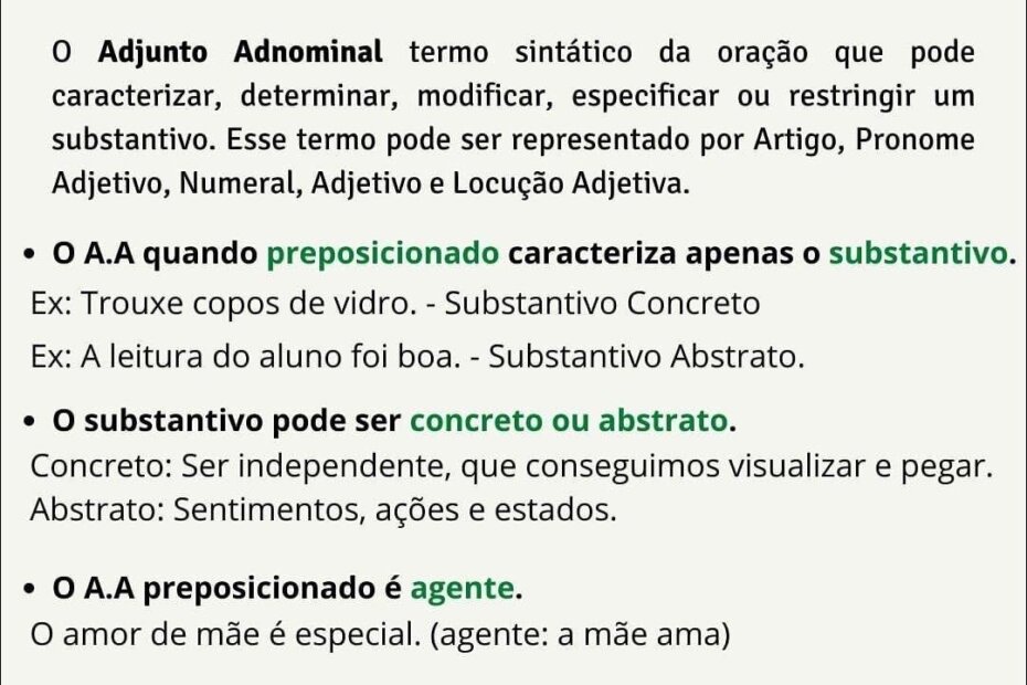 Compilação com os melhores mapas mentais, conceituais, infográficos, diagramas e resumos sobre adjunto adnominal.