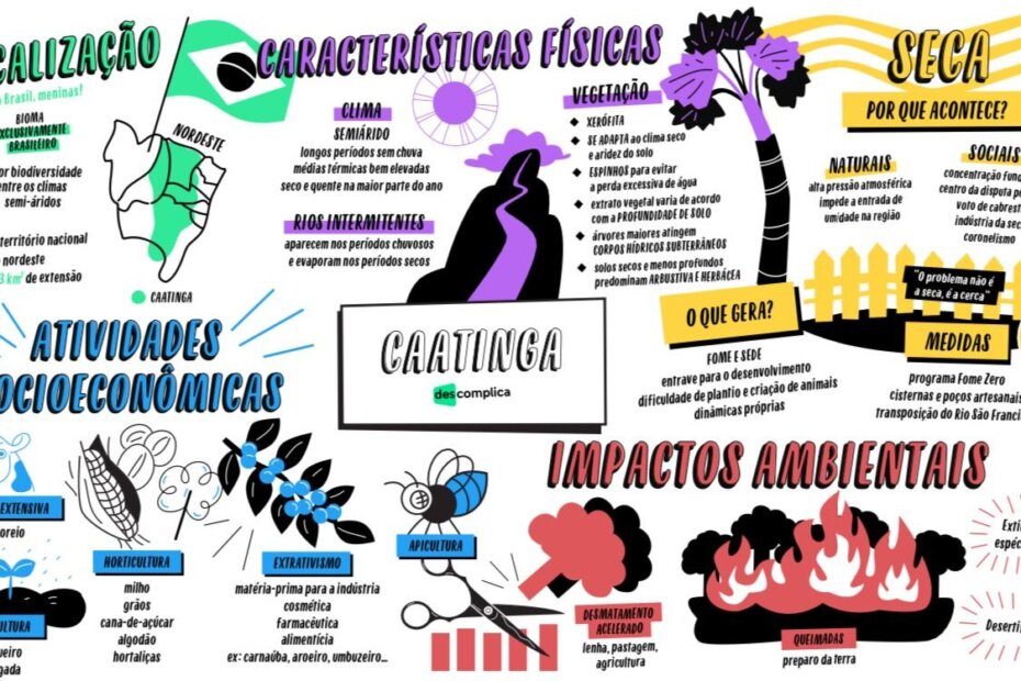 Compilação com os melhores mapas mentais, conceituais, infográficos, diagramas e resumos sobre caatinga.