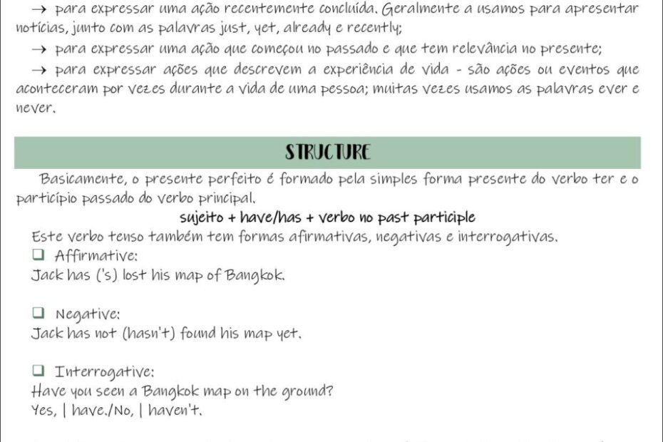 Compilação com os melhores mapas mentais, conceituais, infográficos, diagramas e resumos sobre present perfect.