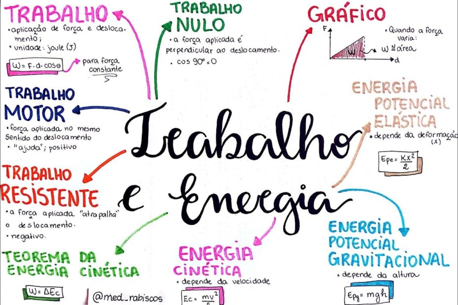 Compilação com os melhores mapas mentais, conceituais, infográficos, diagramas e resumos sobre energia cinética.