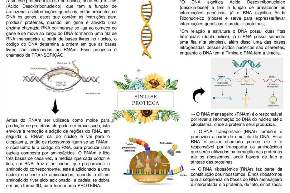 Compilação com os melhores mapas mentais, conceituais, infográficos, diagramas e resumos sobre síntese proteica.