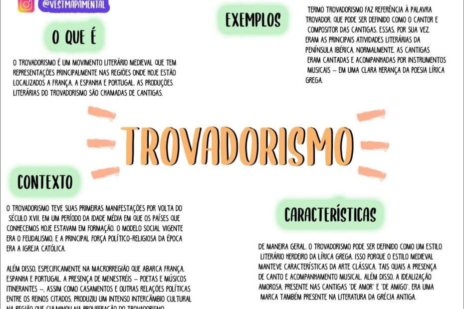 Compilação com os melhores mapas mentais, conceituais, infográficos, diagramas e resumos sobre trovadorismo.