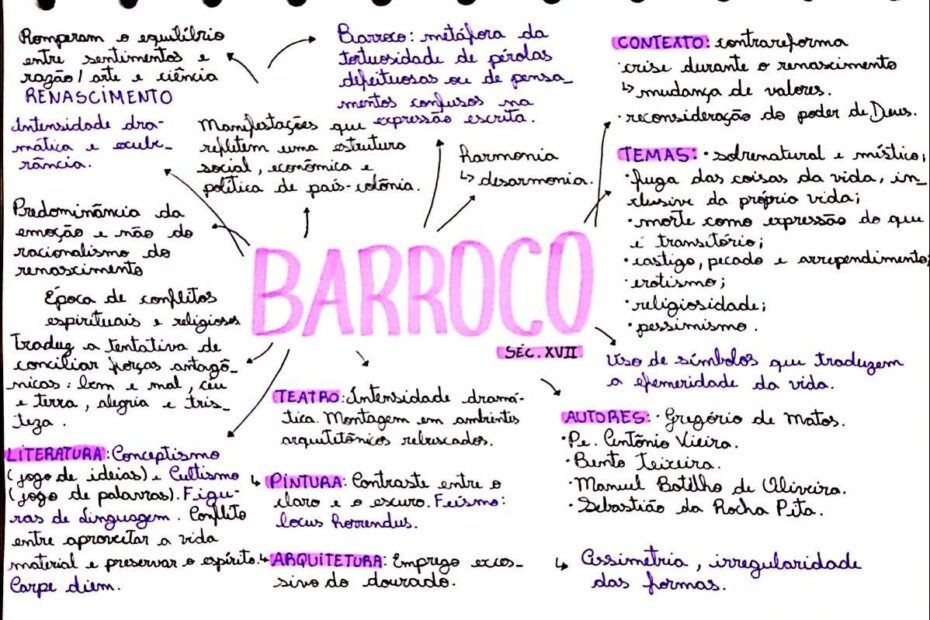 Compilação com os melhores mapas mentais, conceituais, infográficos, diagramas e resumos sobre barroco.