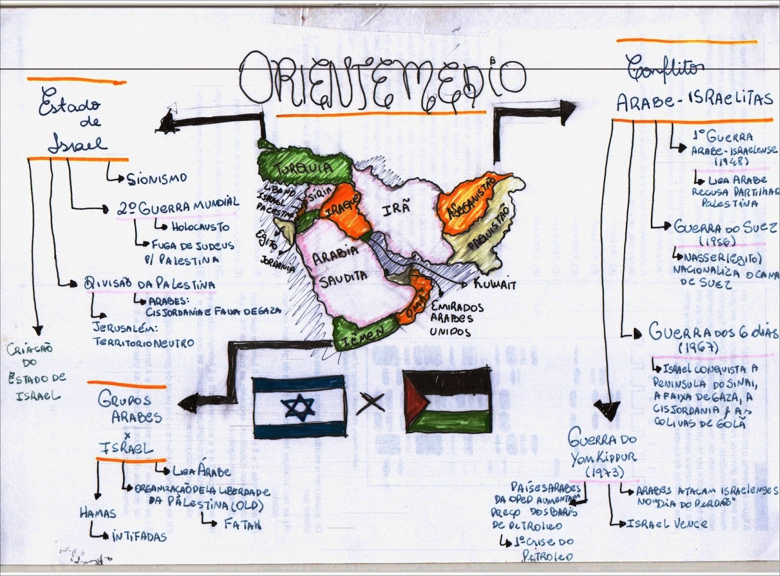 Compilação com os melhores mapas mentais, conceituais, infográficos, diagramas e resumos sobre Palestina.