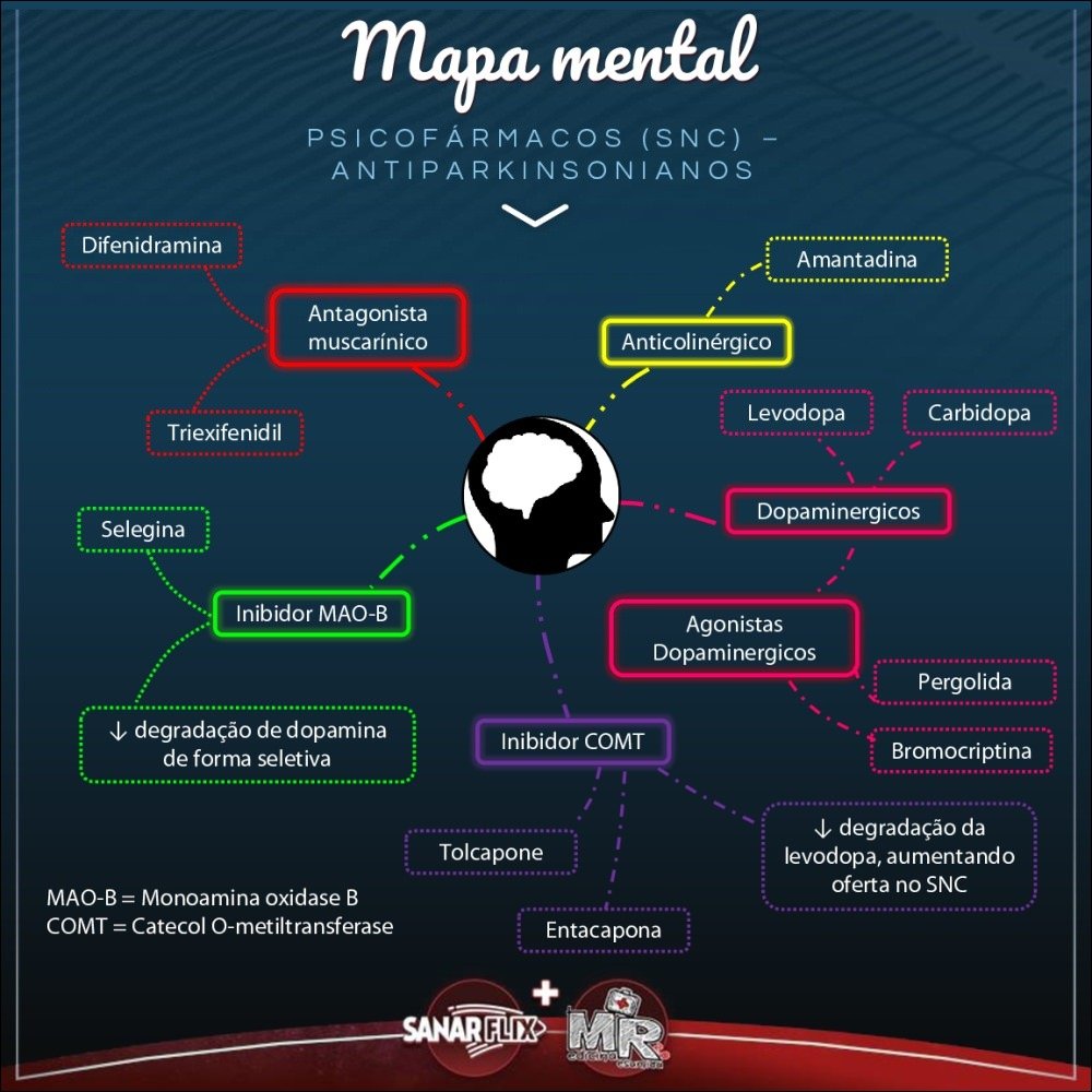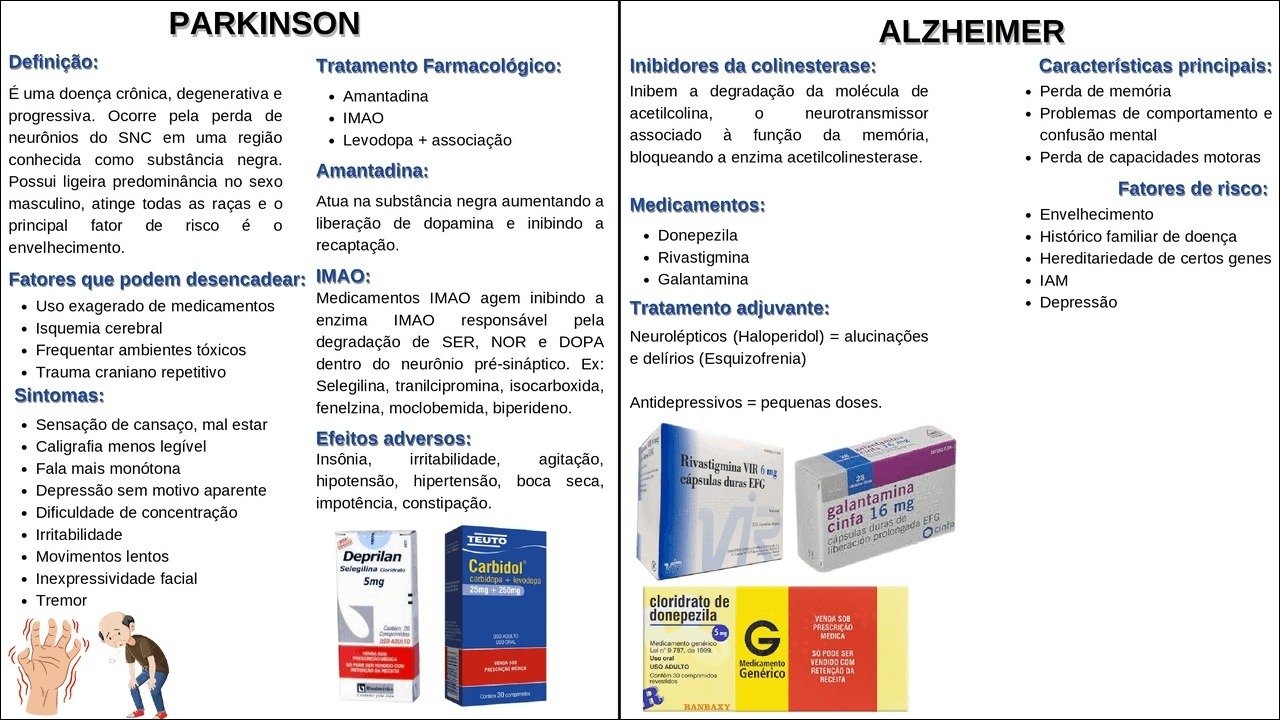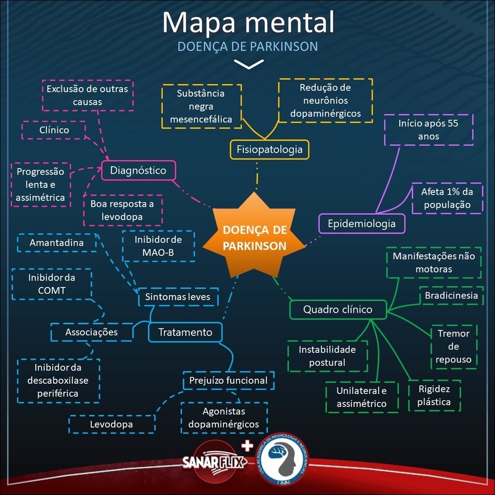 Compilação com os melhores mapas mentais, conceituais, infográficos, diagramas e resumos sobre Parkinson.