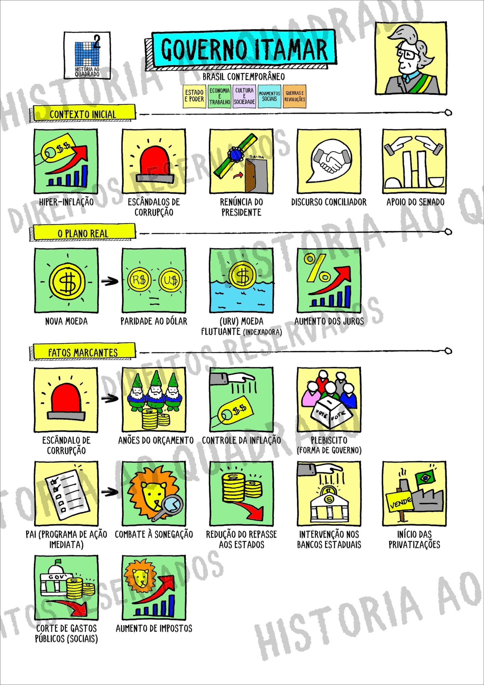 Compilação com os melhores mapas mentais, conceituais, infográficos, diagramas e resumos sobre plano real.