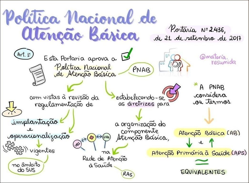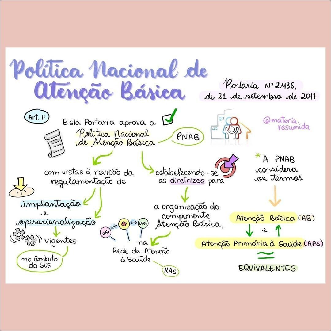 Compilação com os melhores mapas mentais, conceituais, infográficos, diagramas e resumos sobre Política nacional de atenção básica.