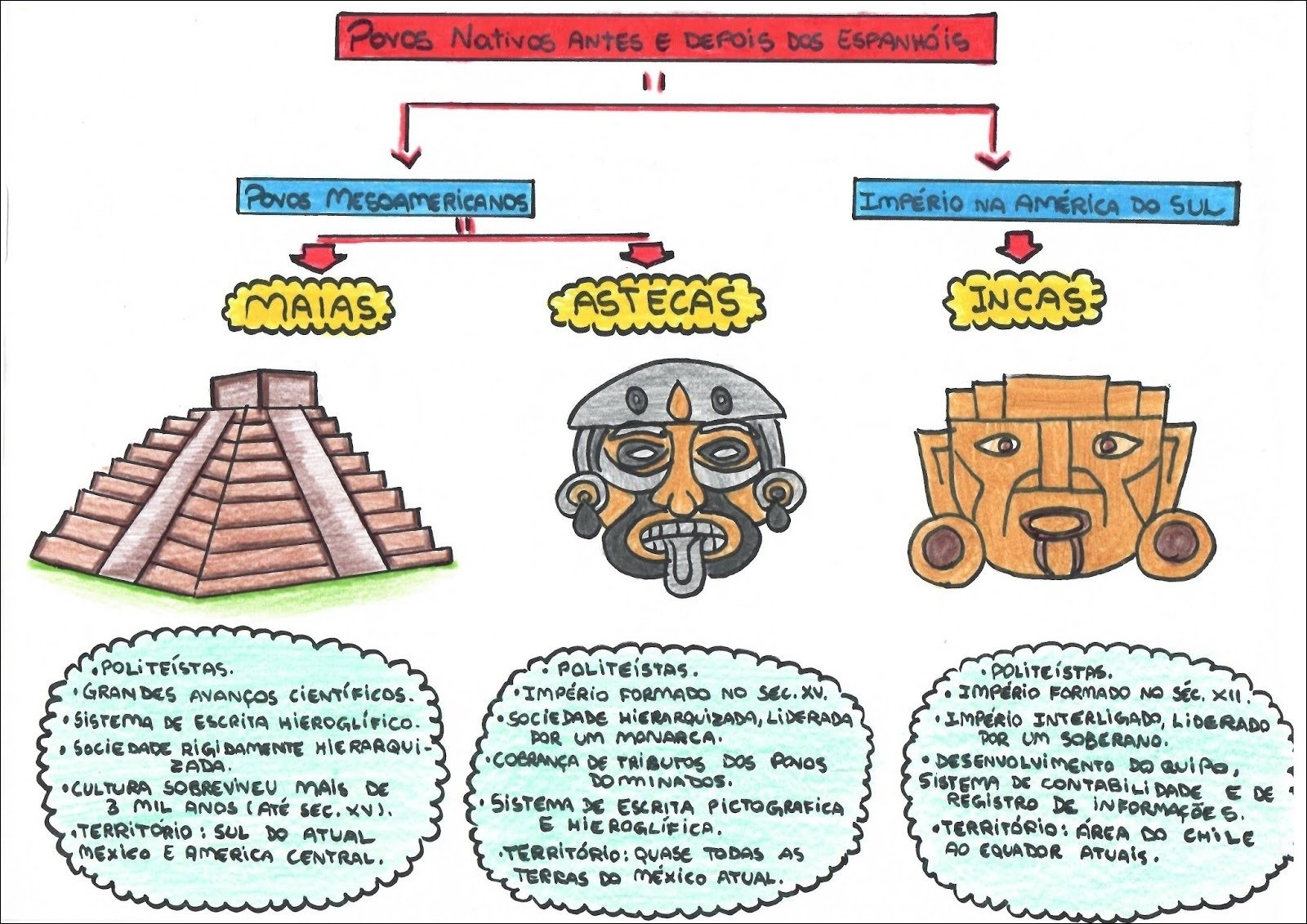 Compilação com os melhores mapas mentais, conceituais, infográficos, diagramas e resumos sobre povos mesoamericanos.