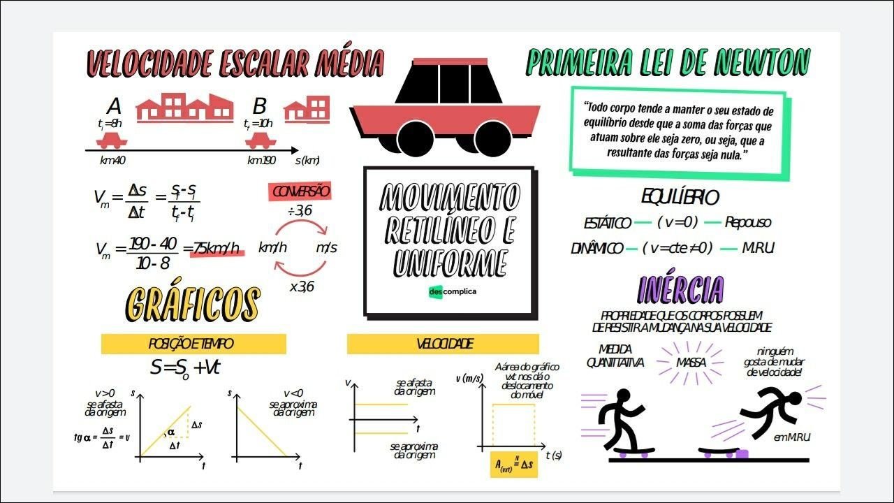 Compilação com os melhores mapas mentais, conceituais, infográficos, diagramas e resumos sobre Primeira lei de Newton.