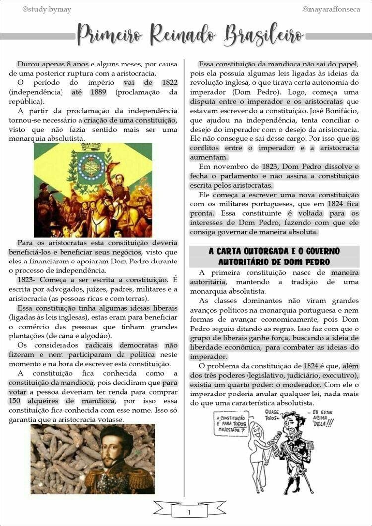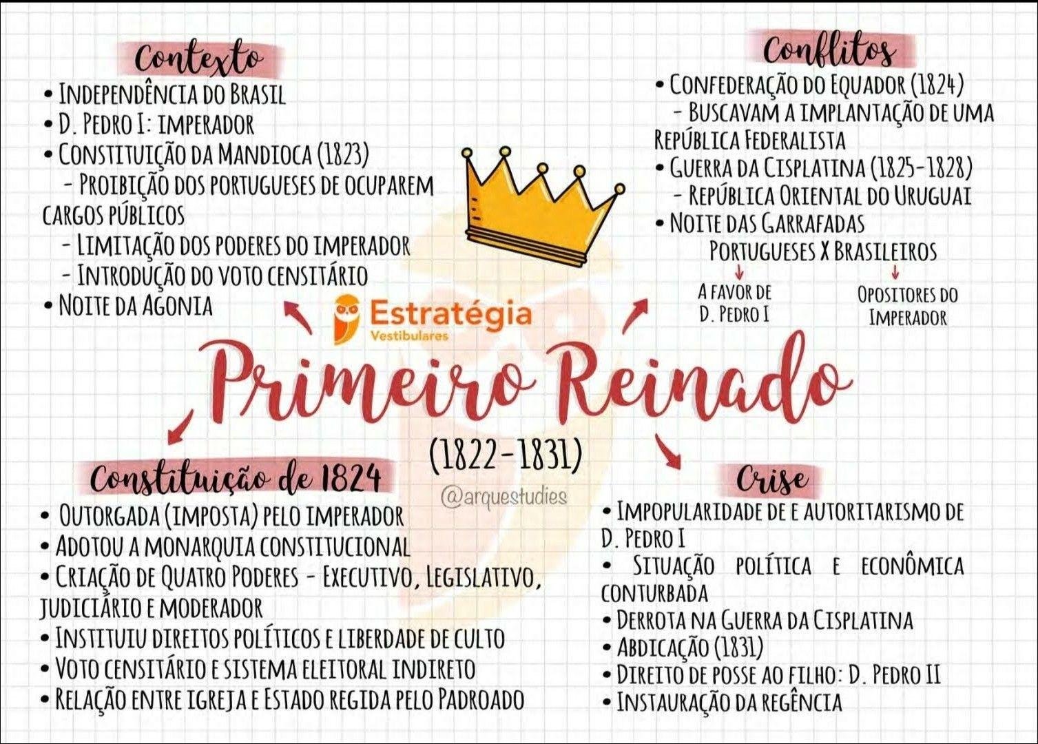 Compilação com os melhores mapas mentais, conceituais, infográficos, diagramas e resumos sobre primeiro reinado.