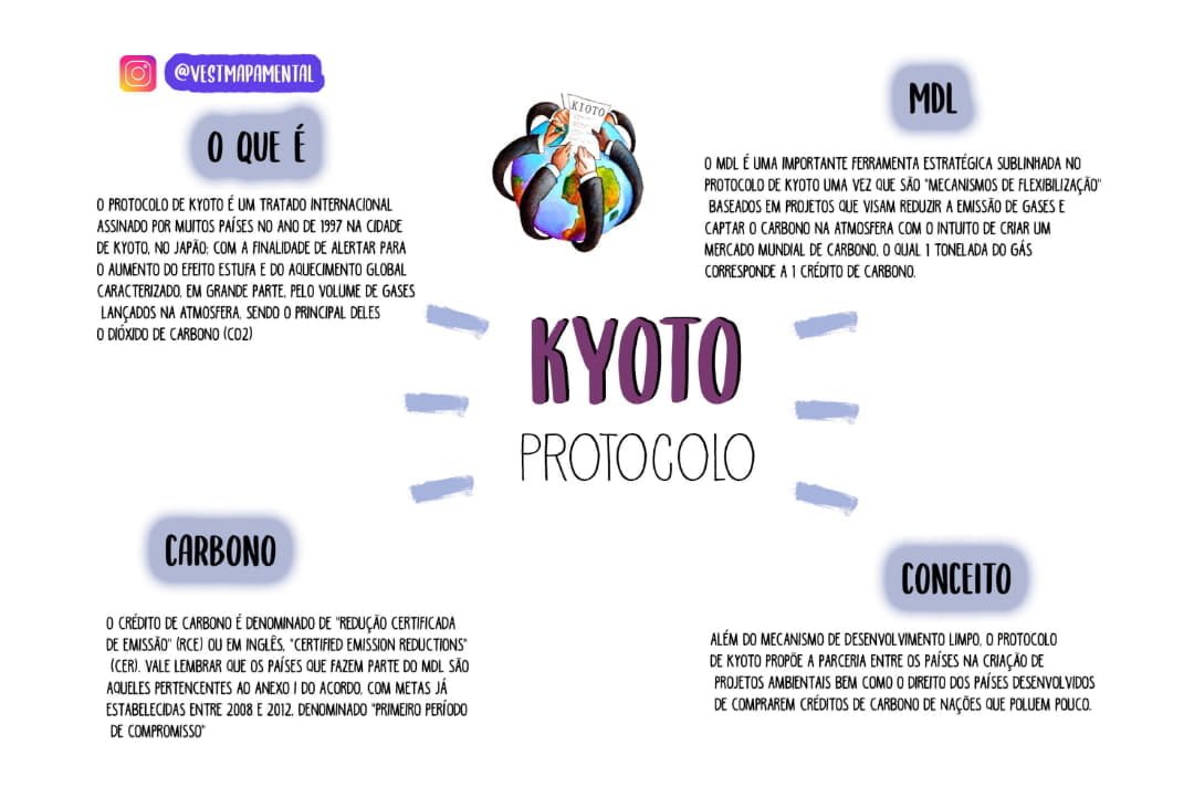 Compilação com os melhores mapas mentais, conceituais, infográficos, diagramas e resumos sobre Protocolo de Quioto.
