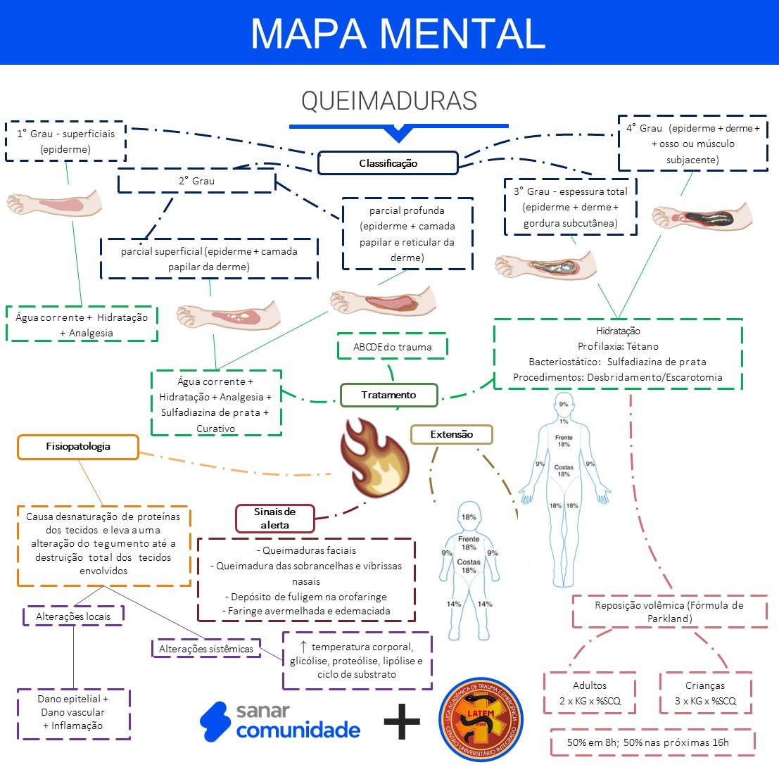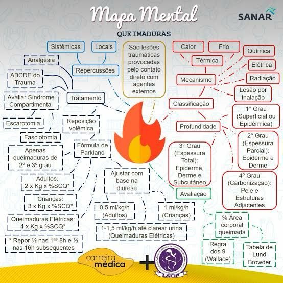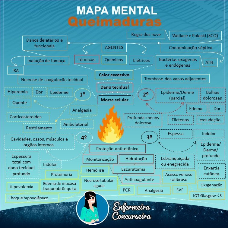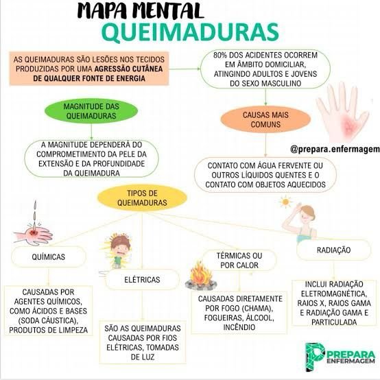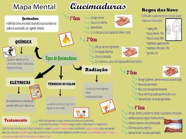 Compilação com os melhores mapas mentais, conceituais, infográficos, diagramas e resumos sobre queimadura.