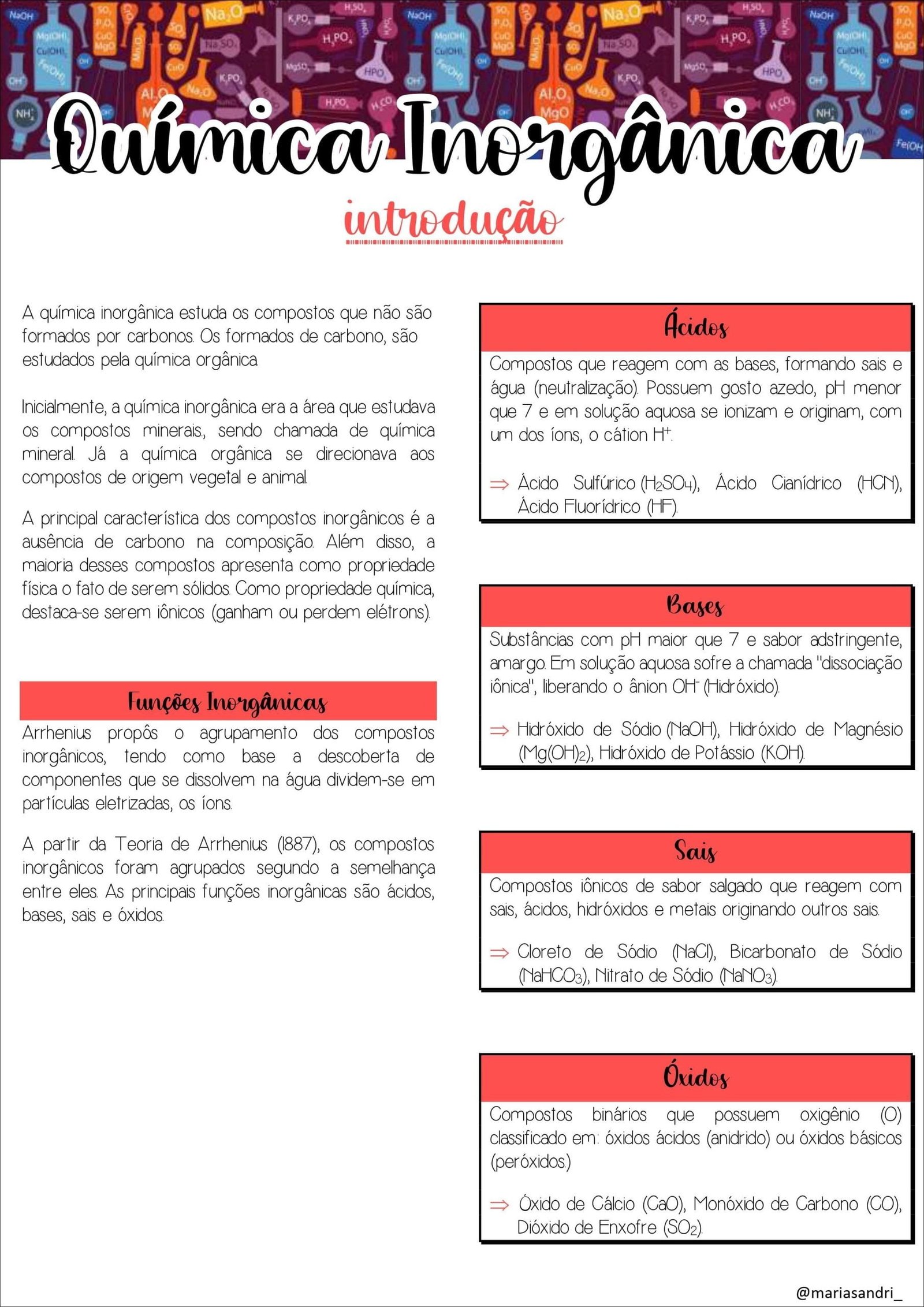 Compilação com os melhores mapas mentais, conceituais, infográficos, diagramas e resumos sobre Química inorgânica.