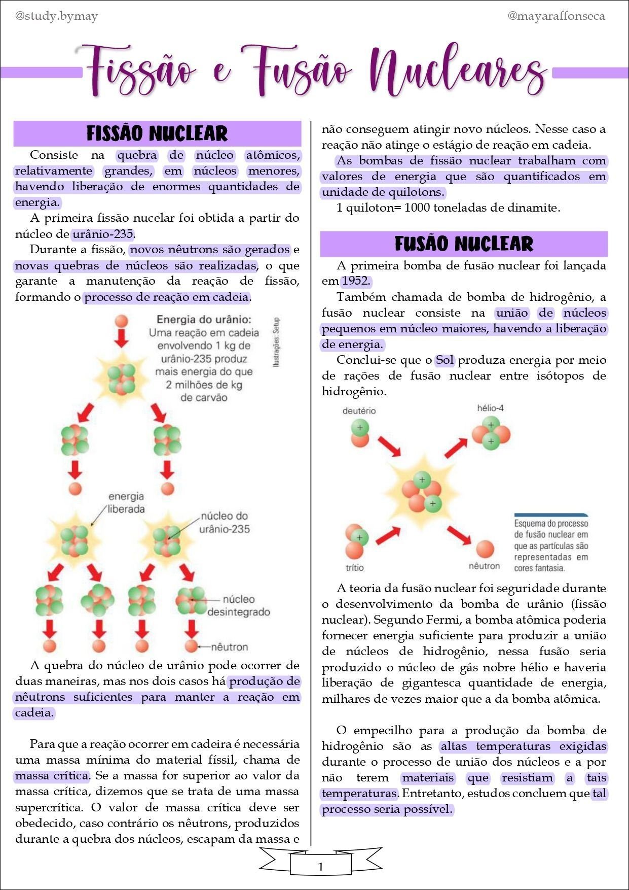 Compilação com os melhores mapas mentais, conceituais, infográficos, diagramas e resumos sobre reação em cadeia.