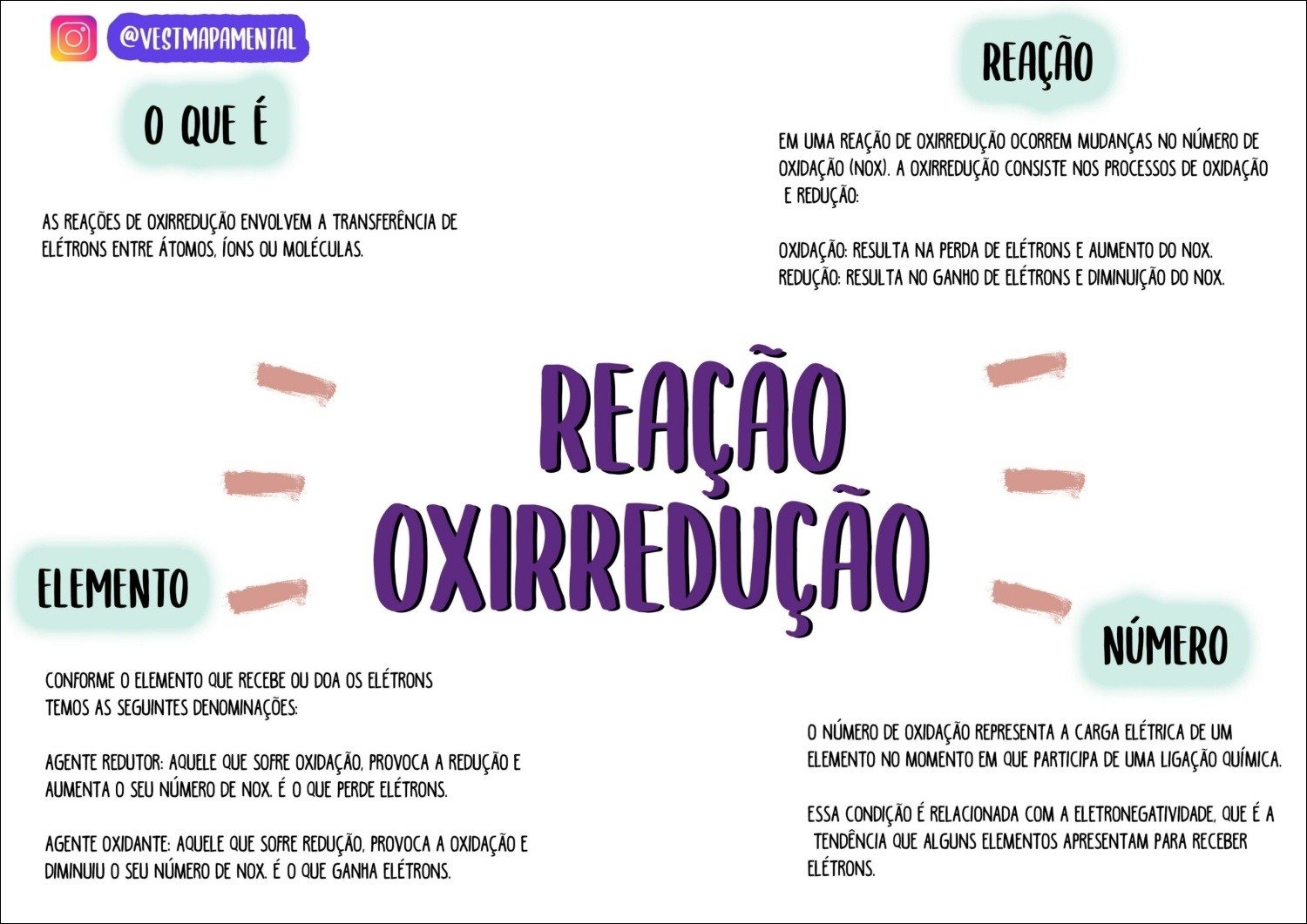 Compilação com os melhores mapas mentais, conceituais, infográficos, diagramas e resumos sobre reações de oxirredução.