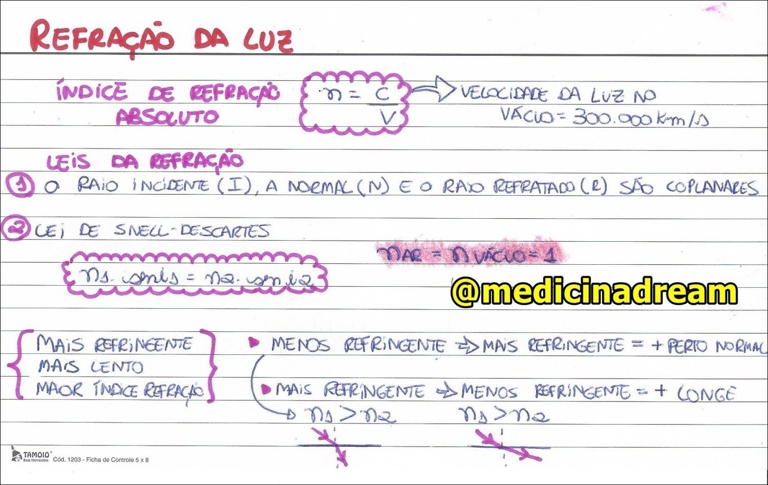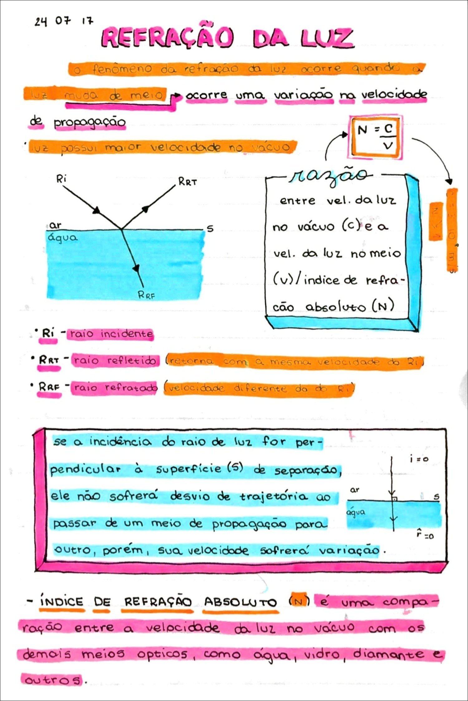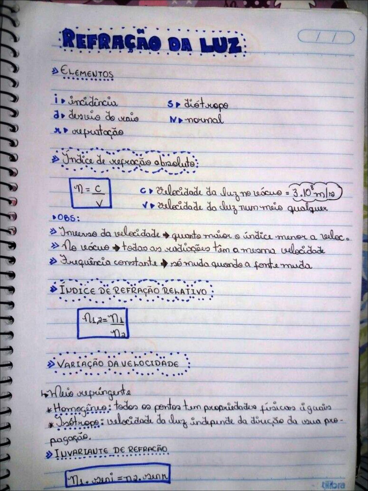Resumo sobre refração da luz