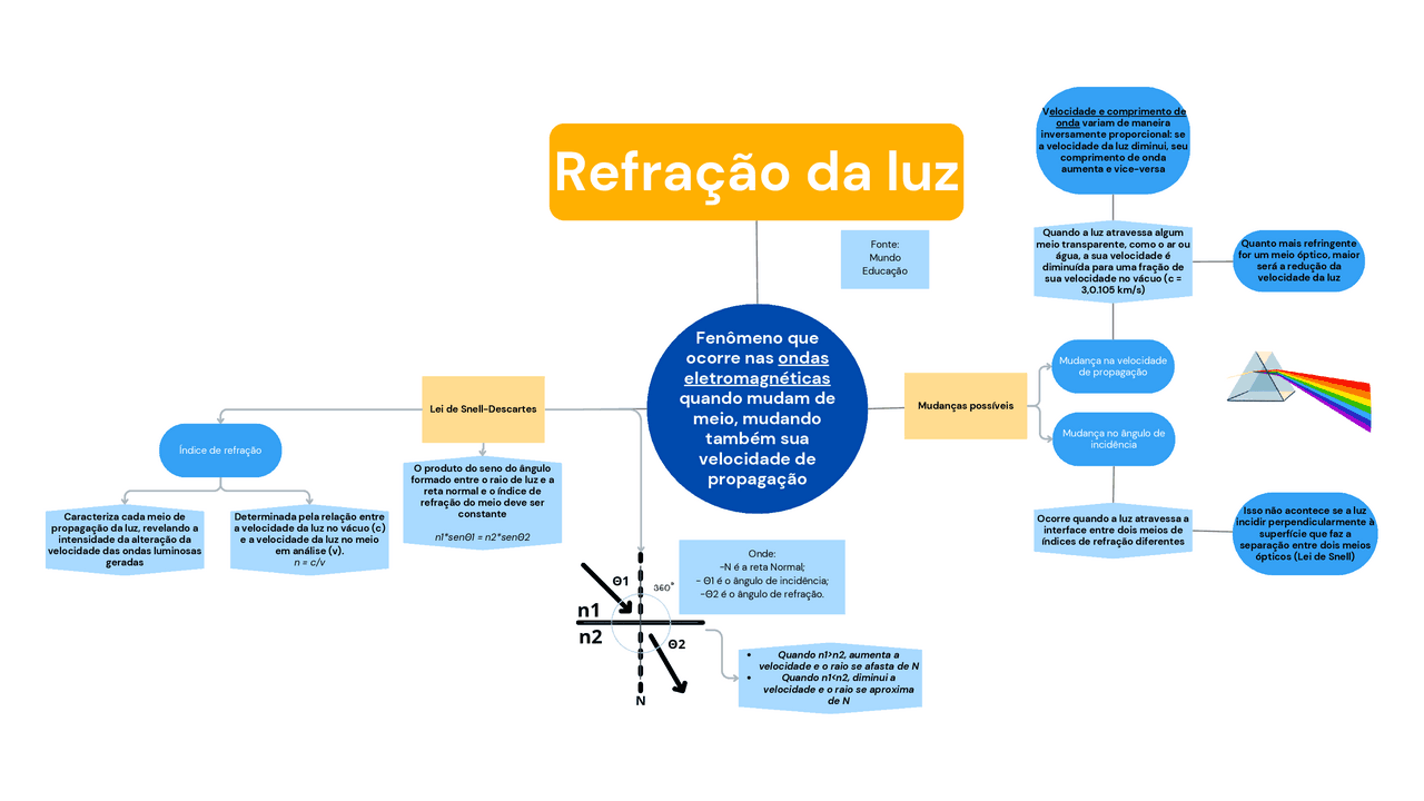 Compilação com os melhores mapas mentais, conceituais, infográficos, diagramas e resumos sobre refração da luz.
