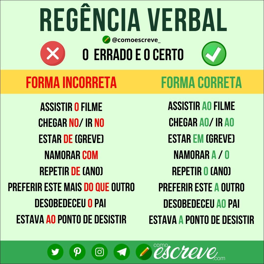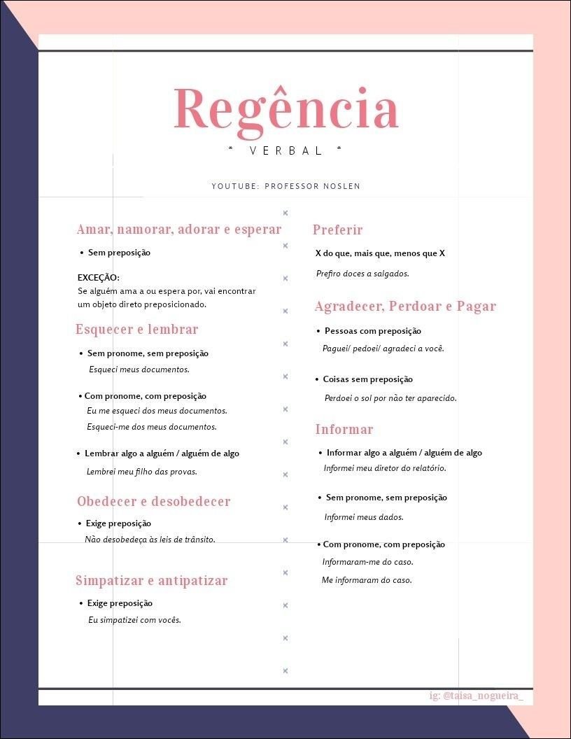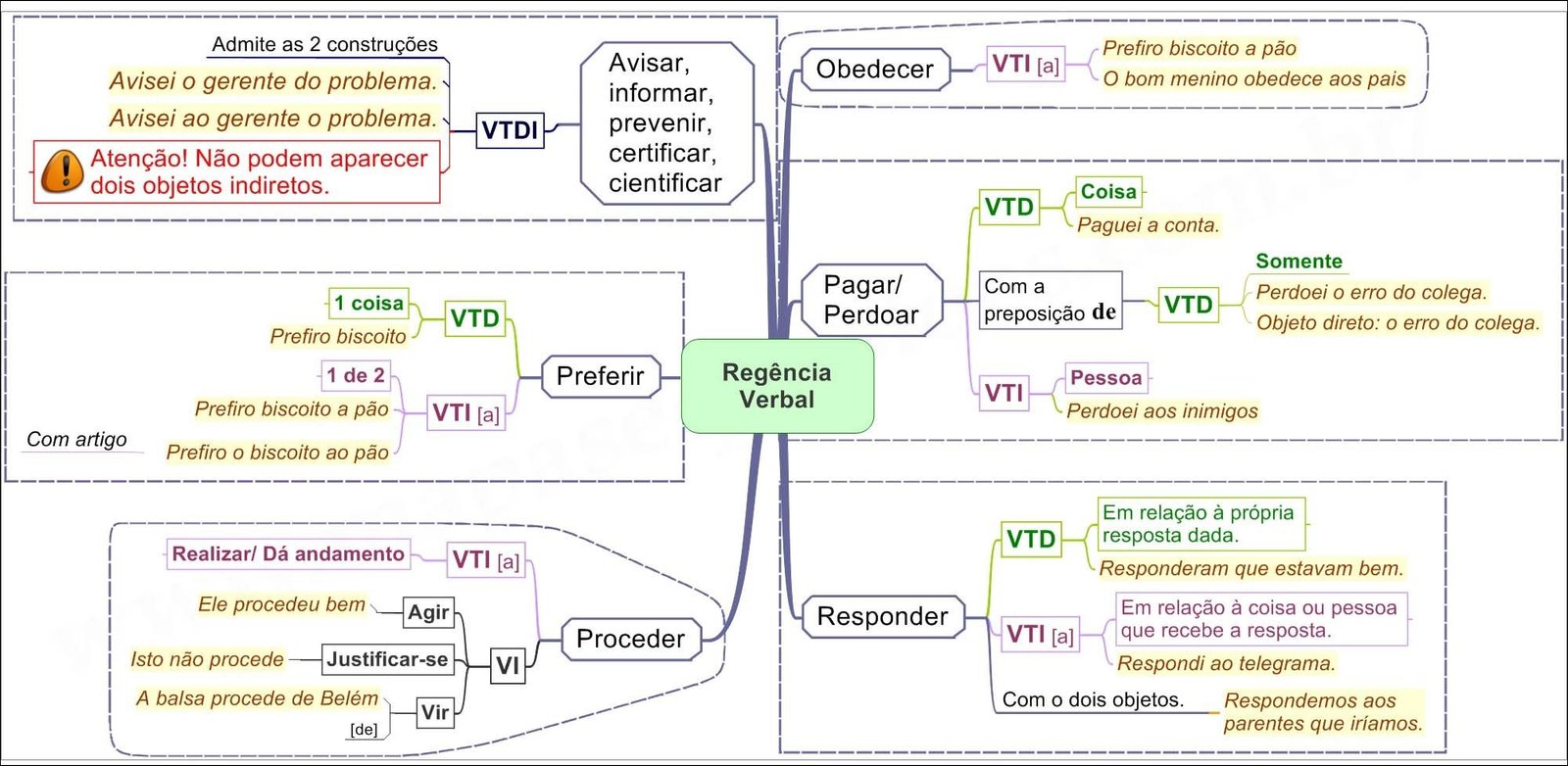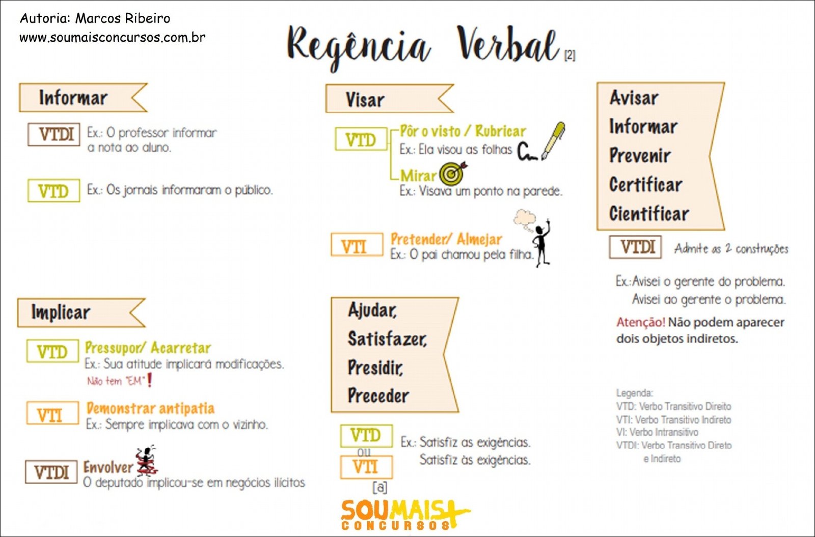 Compilação com os melhores mapas mentais, conceituais, infográficos, diagramas e resumos sobre regência verbal.