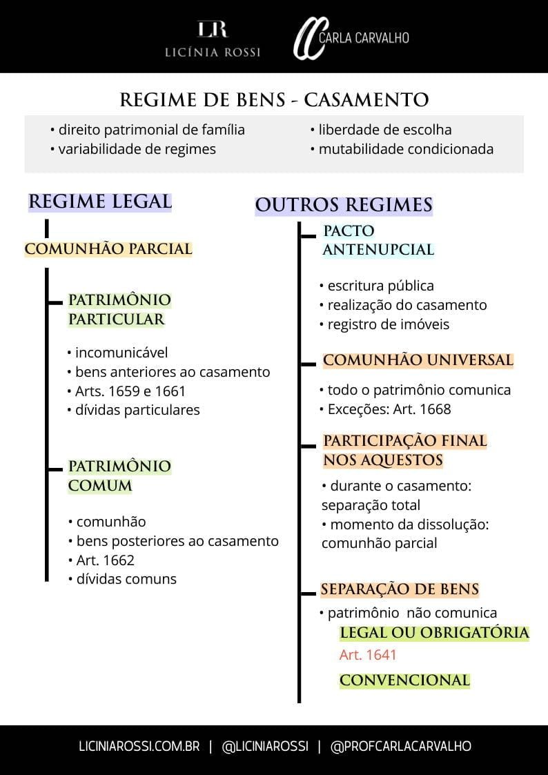 Compilação com os melhores mapas mentais, conceituais, infográficos, diagramas e resumos sobre regime de bens.