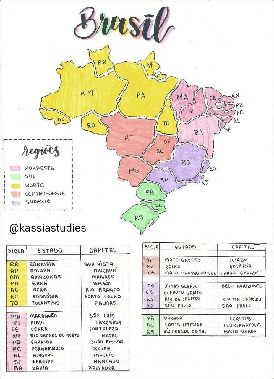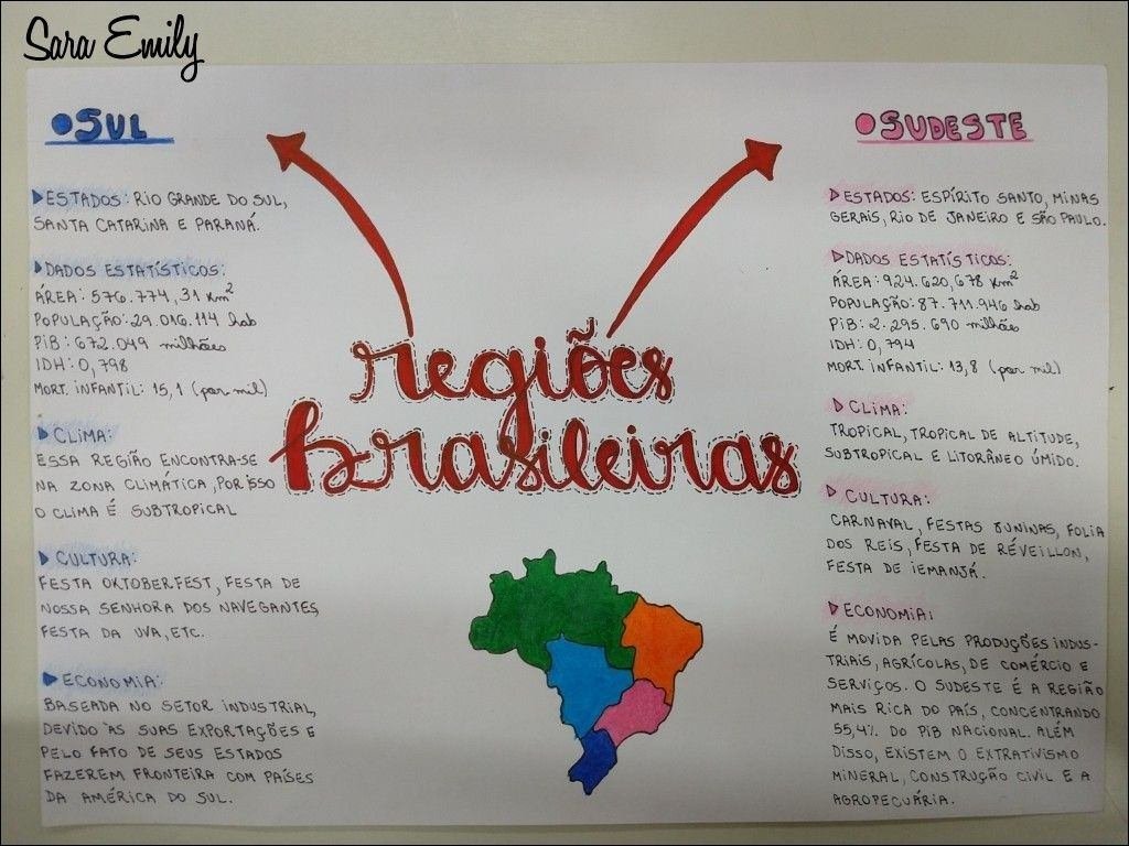 Compilação com os melhores mapas mentais, conceituais, infográficos, diagramas e resumos sobre regioes brasileiras.