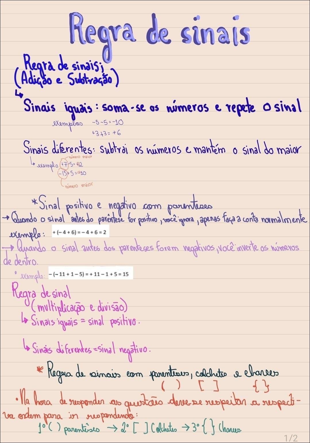 Compilação com os melhores mapas mentais, conceituais, infográficos, diagramas e resumos sobre regra de sinais.