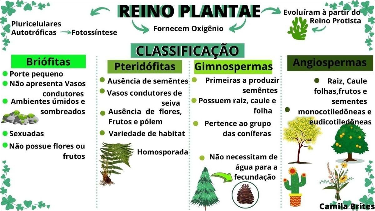 Compilação com os melhores mapas mentais, conceituais, infográficos, diagramas e resumos sobre Reino Plantae.