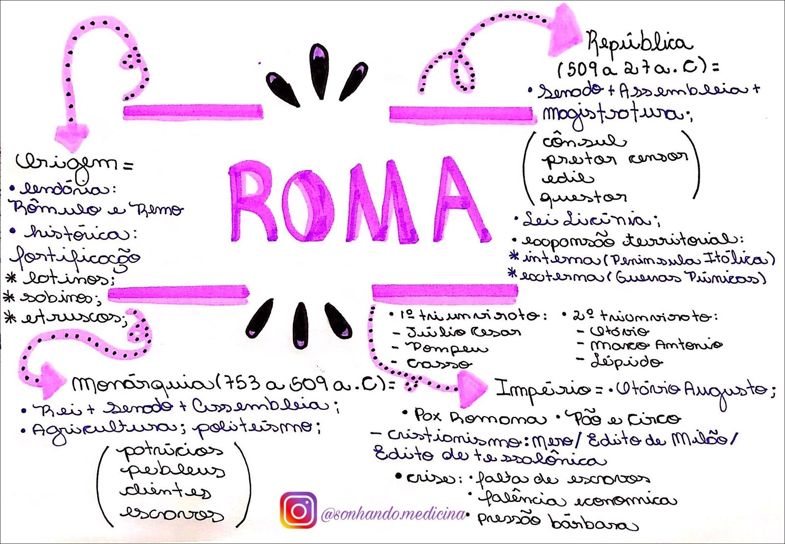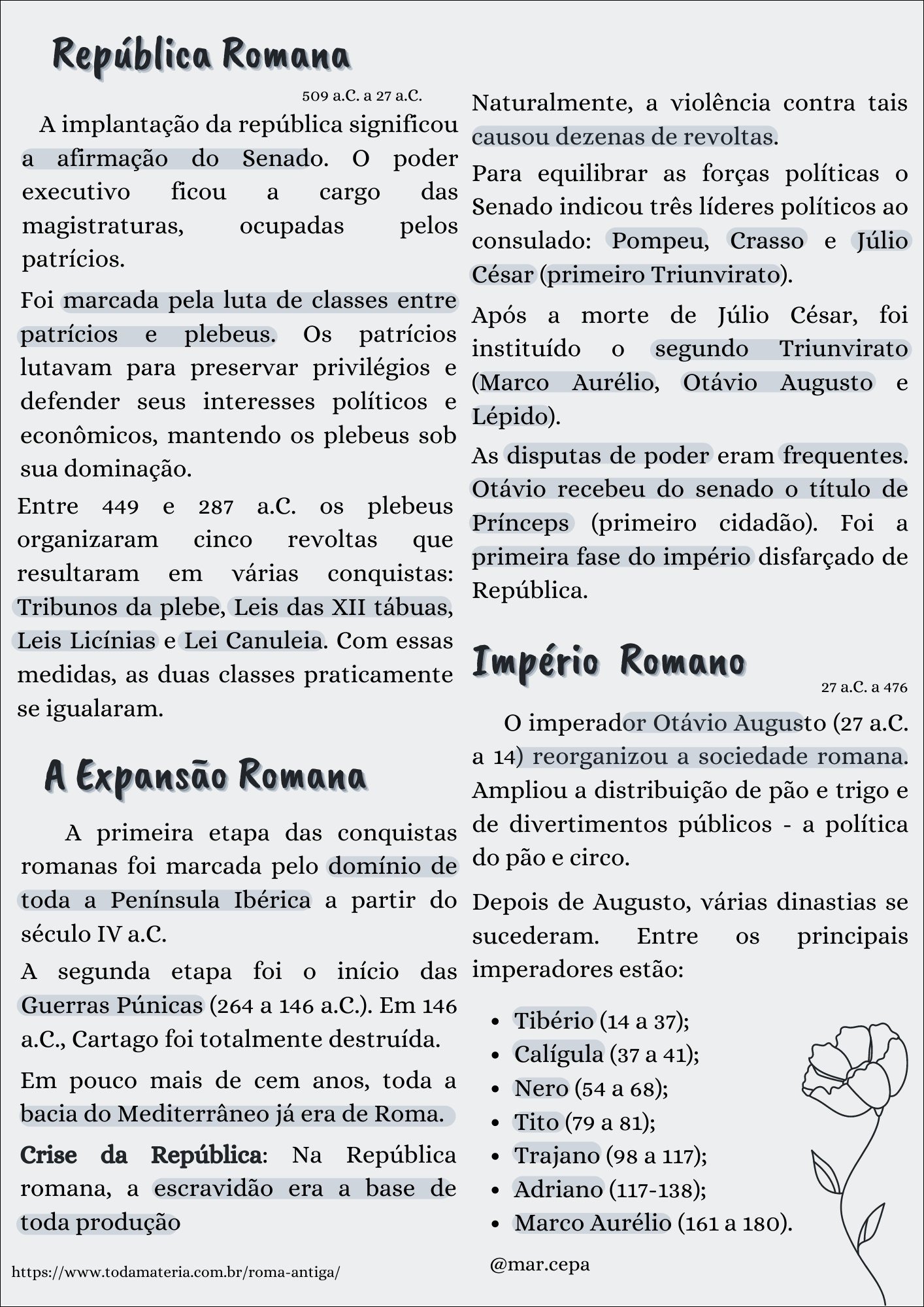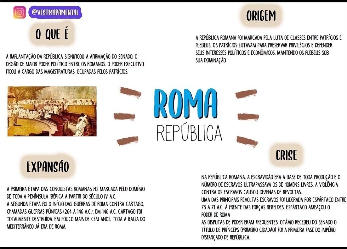 Compilação com os melhores mapas mentais, conceituais, infográficos, diagramas e resumos sobre República Romana.