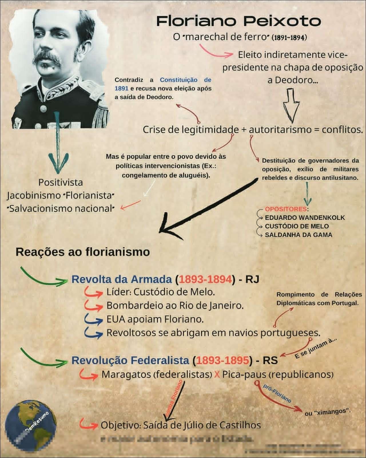 Compilação com os melhores mapas mentais, conceituais, infográficos, diagramas e resumos sobre Revolta da Armada.