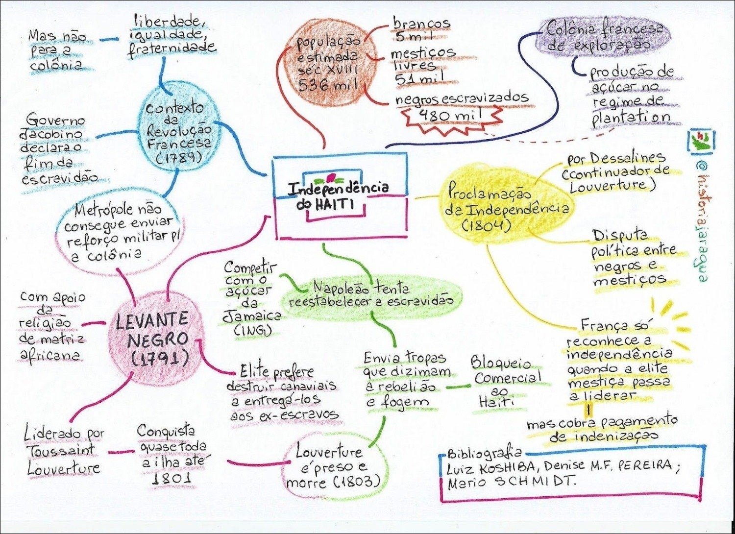 Compilação com os melhores mapas mentais, conceituais, infográficos, diagramas e resumos sobre Revolução Haitiana.