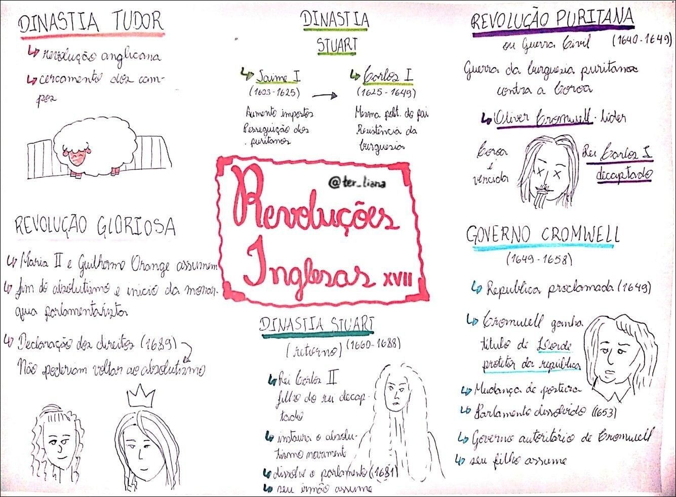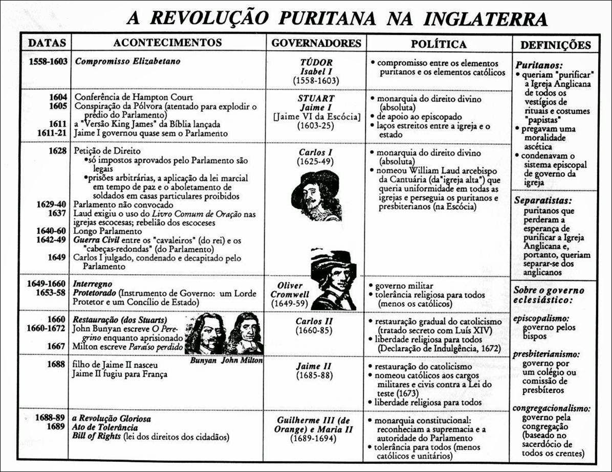 Compilação com os melhores mapas mentais, conceituais, infográficos, diagramas e resumos sobre Revolução Puritana.