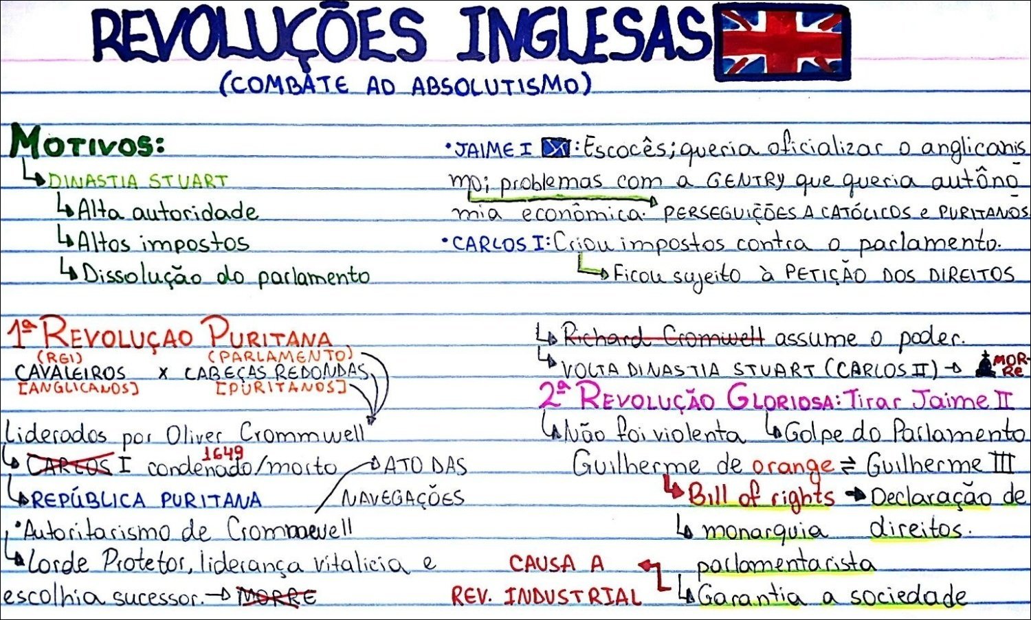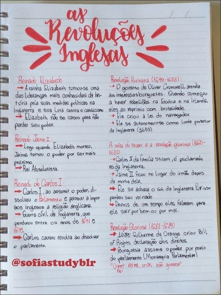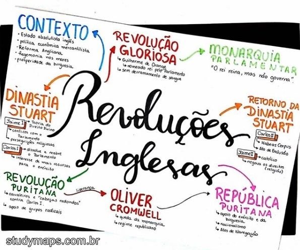 Compilação com os melhores mapas mentais, conceituais, infográficos, diagramas e resumos sobre revoluções inglesas.