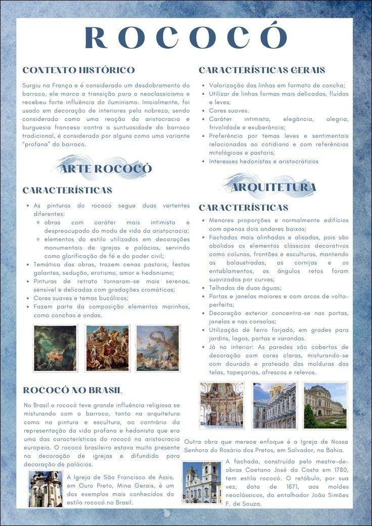 Compilação com os melhores mapas mentais, conceituais, infográficos, diagramas e resumos sobre rococó.
