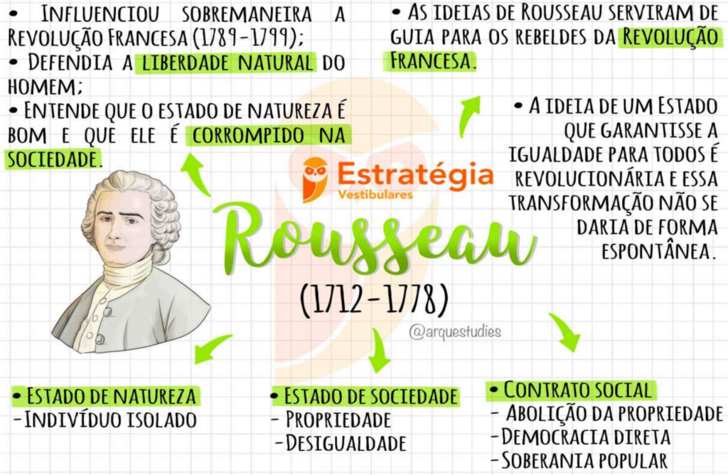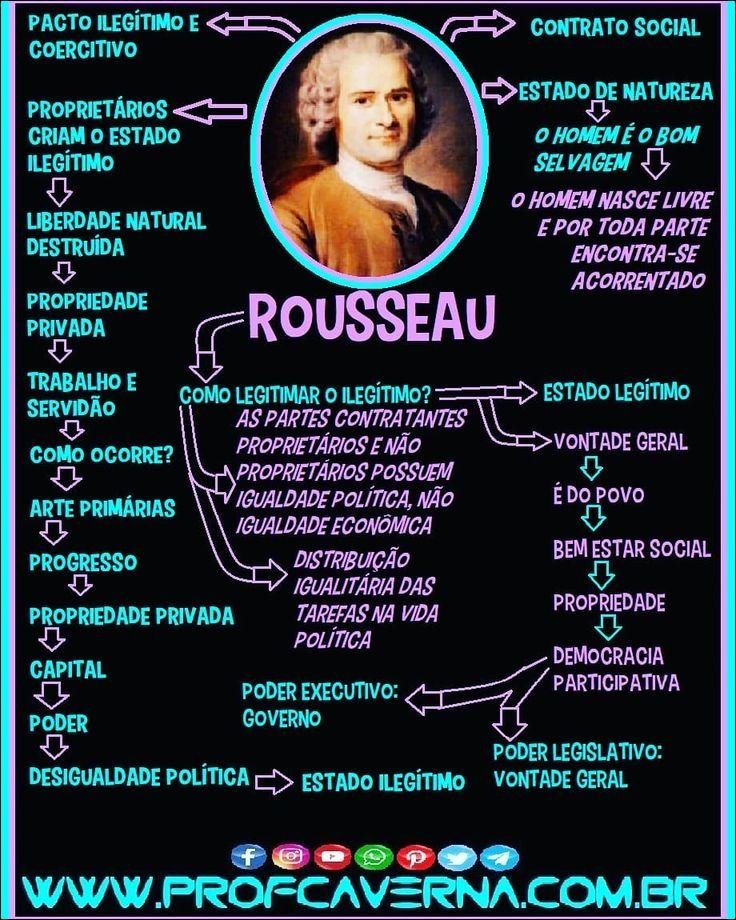 Compilação com os melhores mapas mentais, conceituais, infográficos, diagramas e resumos sobre rousseau.