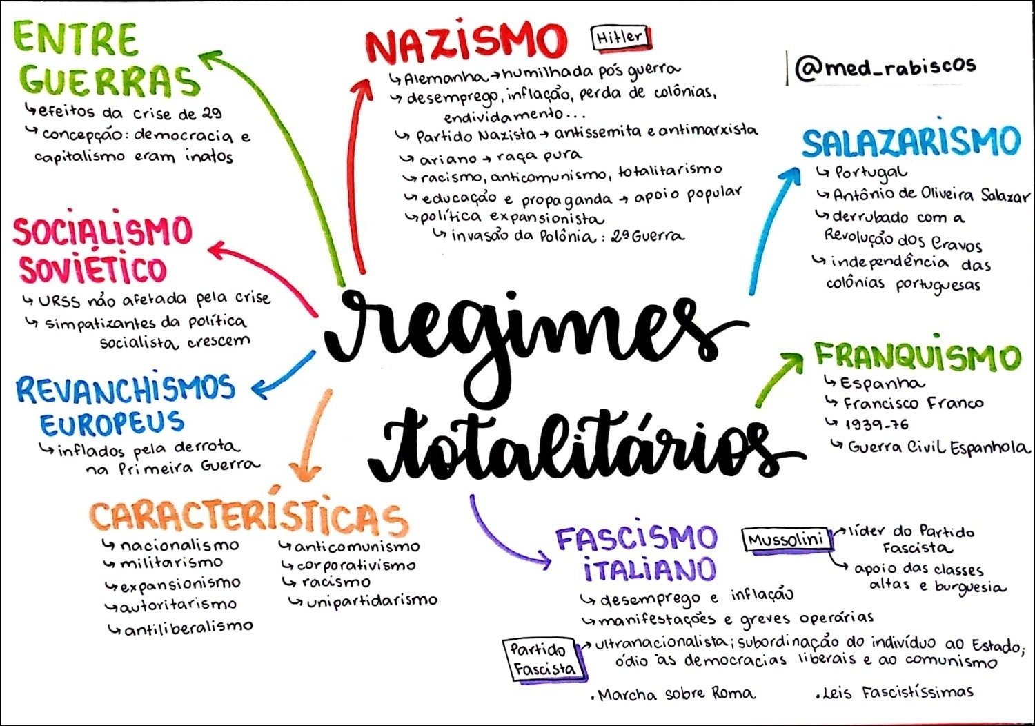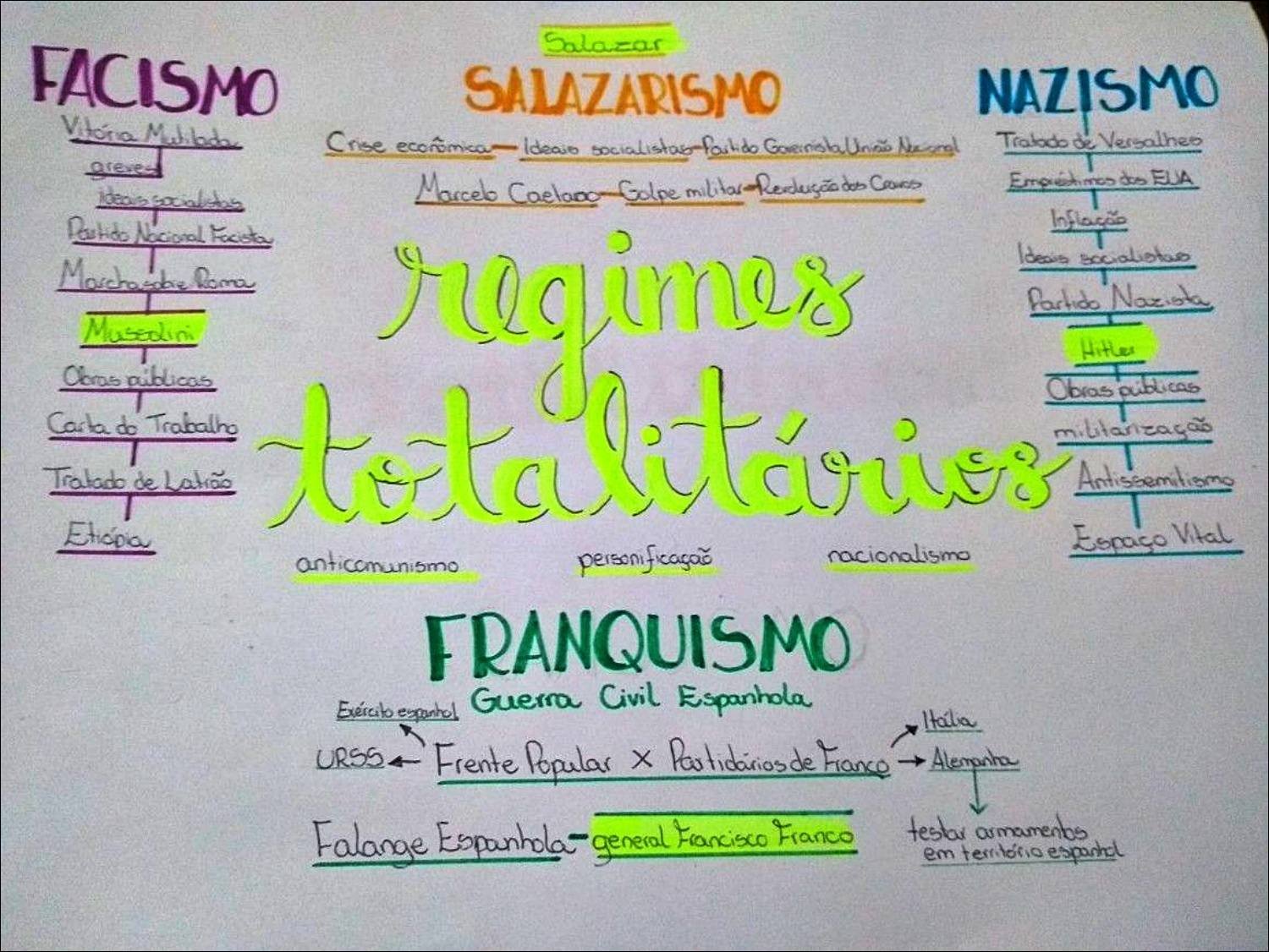 Compilação com os melhores mapas mentais, conceituais, infográficos, diagramas e resumos sobre salazarismo.