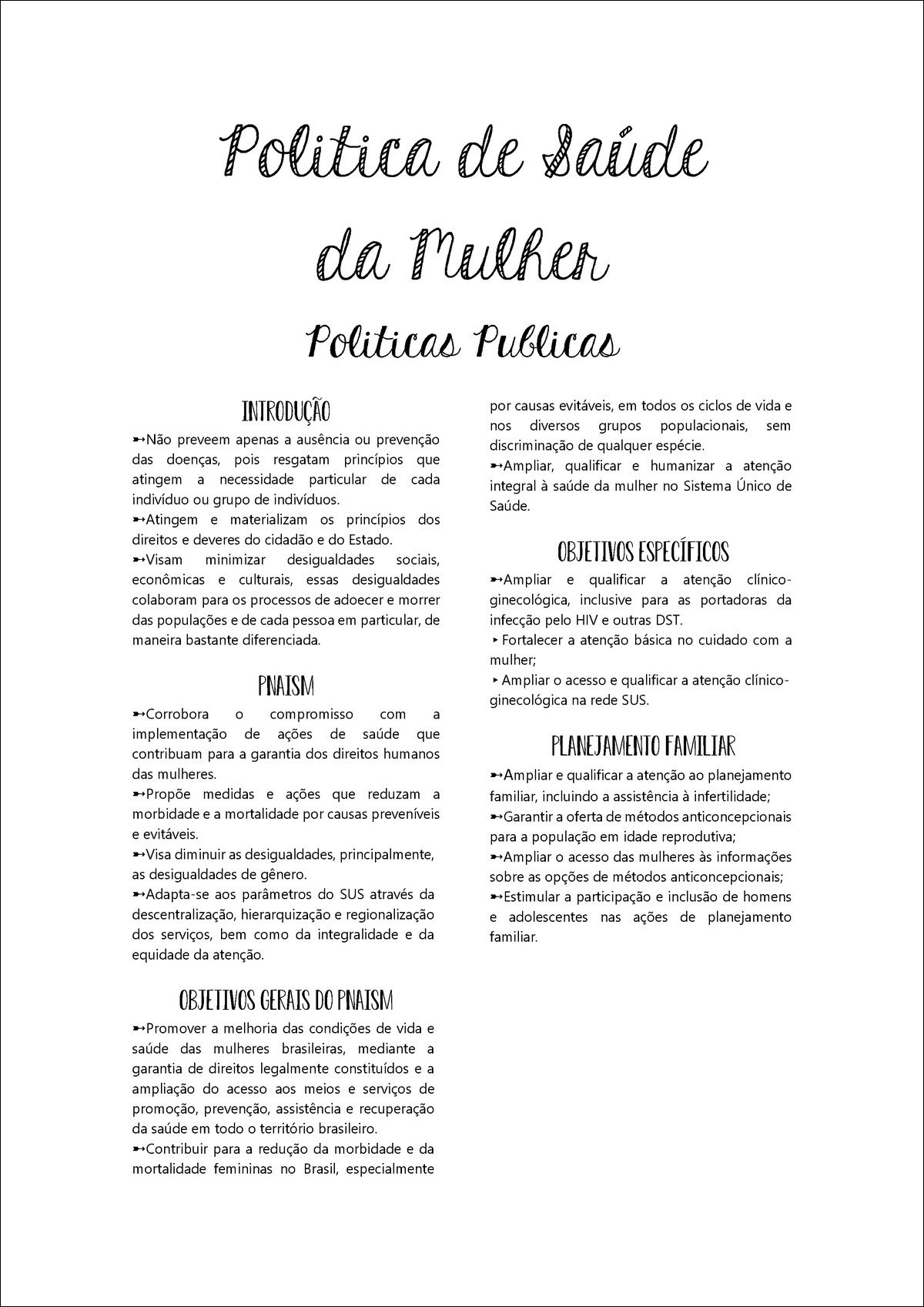 Resumo sobre Saúde da mulher