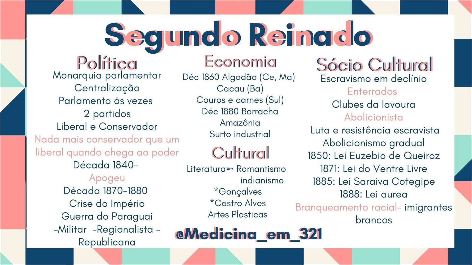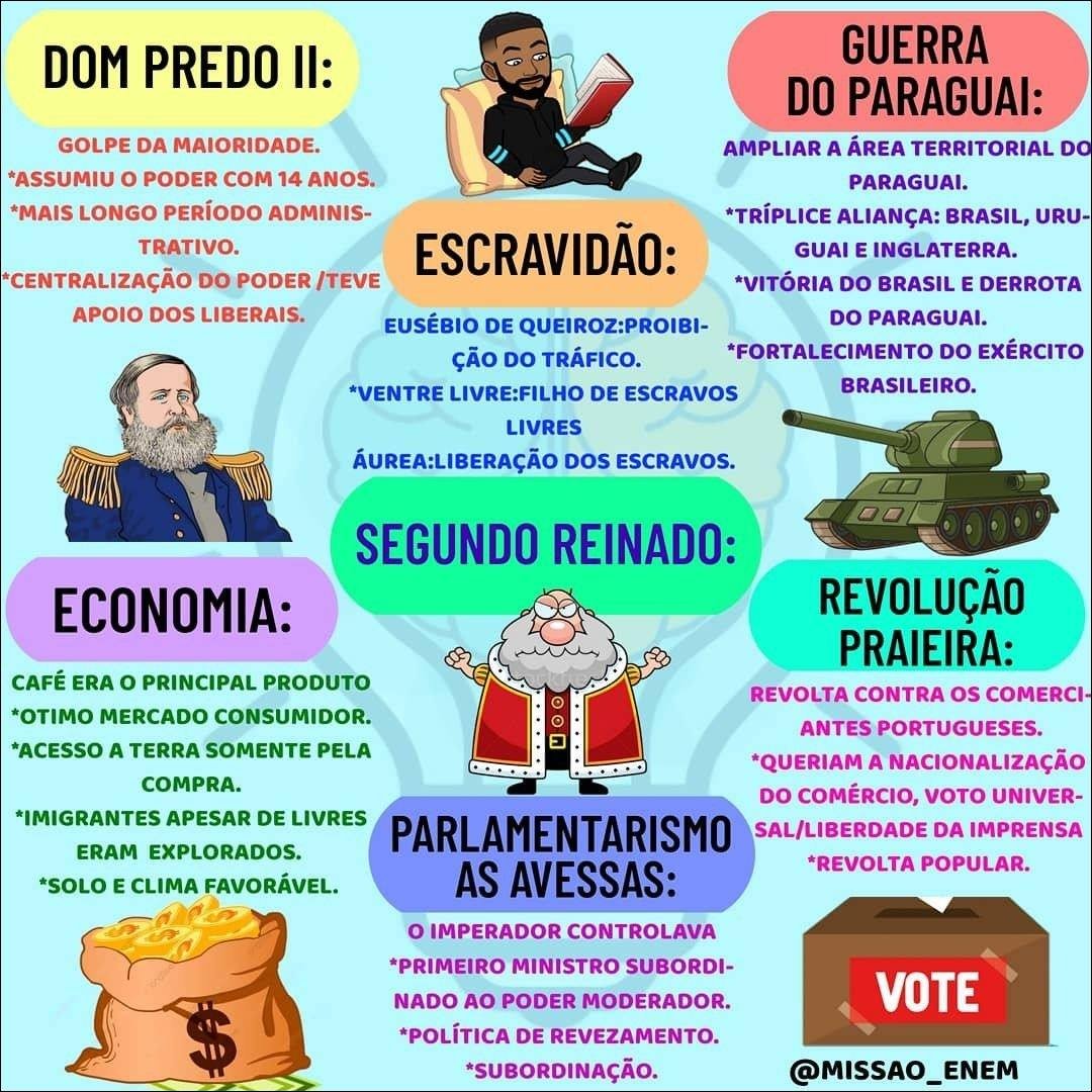Compilação com os melhores mapas mentais, conceituais, infográficos, diagramas e resumos sobre segundo reinado.