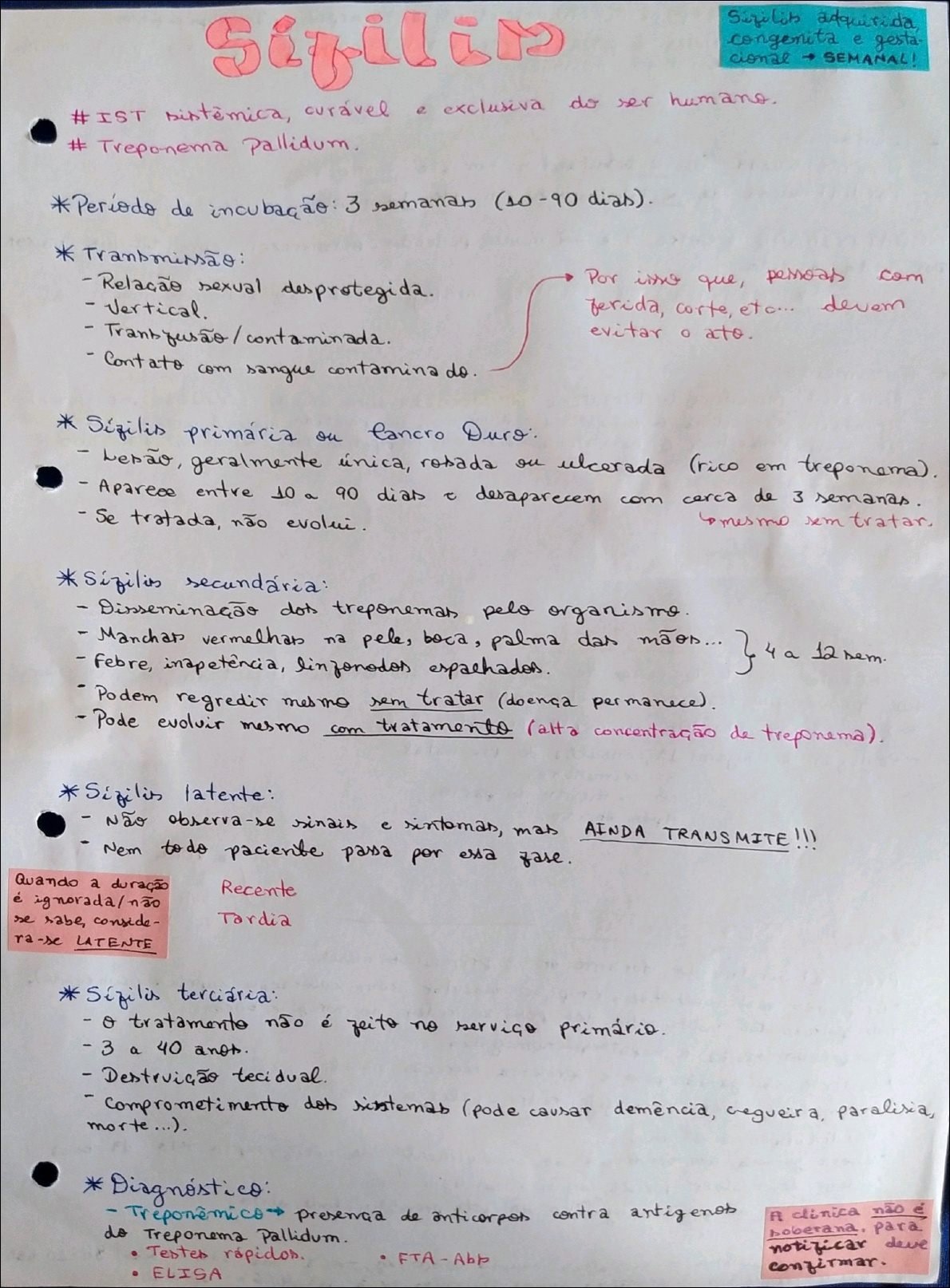 Resumo sobre sífilis
