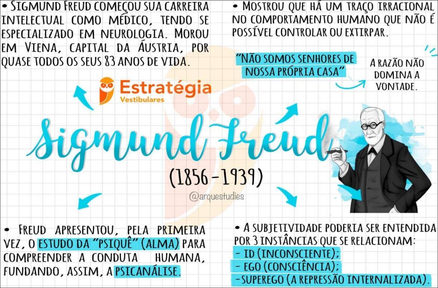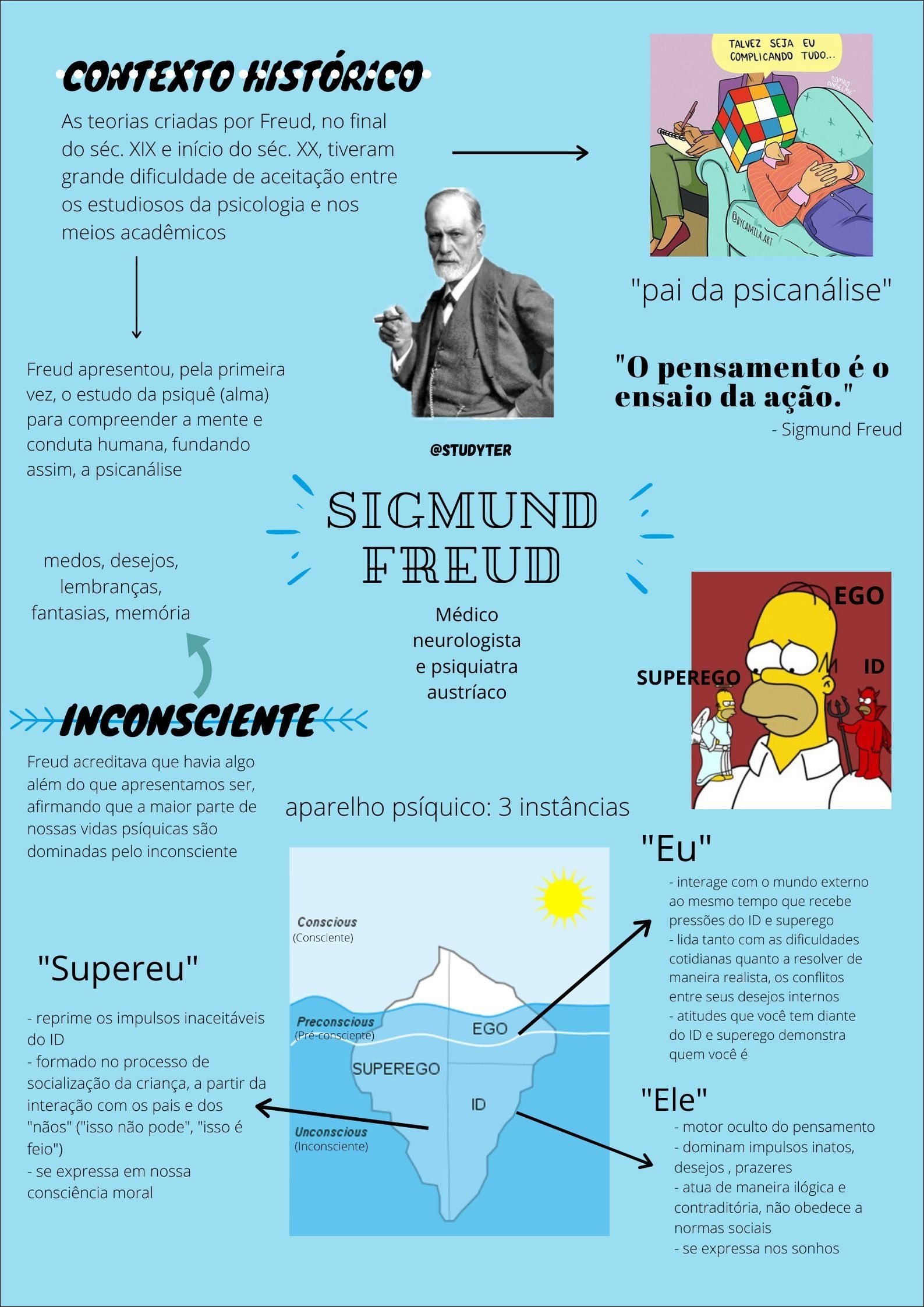 Compilação com os melhores mapas mentais, conceituais, infográficos, diagramas e resumos sobre sigmund freud.