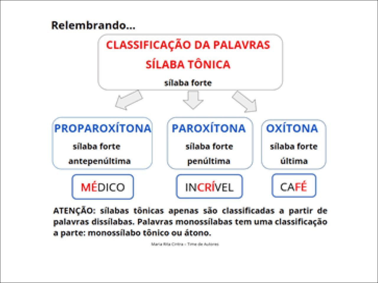 A posição da sílaba tônica determina a classificação das palavras em oxítonas (tônica na última sílaba), paroxítonas (tônica na penúltima sílaba) e proparoxítonas (tônica na antepenúltima sílaba). Essa classificação é fundamental para a acentuação gráfica em português, pois a maioria das palavras segue regras específicas para receber acento.