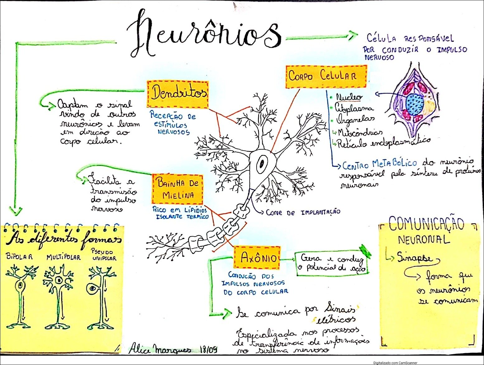 Compilação com os melhores mapas mentais, conceituais, infográficos, diagramas e resumos sobre sinapse.