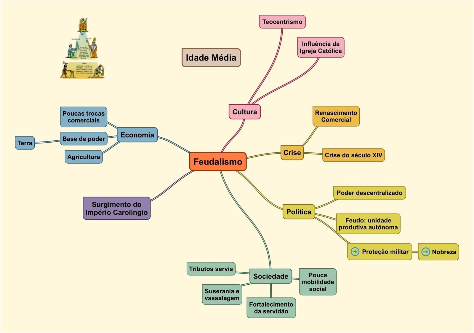 Compilação com os melhores mapas mentais, conceituais, infográficos, diagramas e resumos sobre sistema feudal.