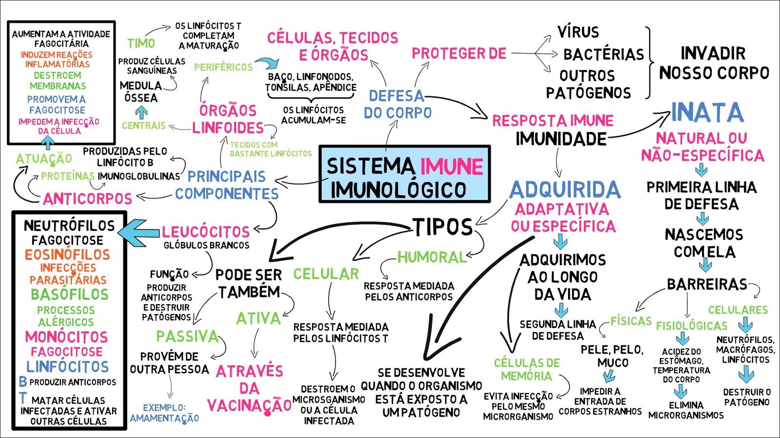 Compilação com os melhores mapas mentais, conceituais, infográficos, diagramas e resumos sobre sistema imunológico.