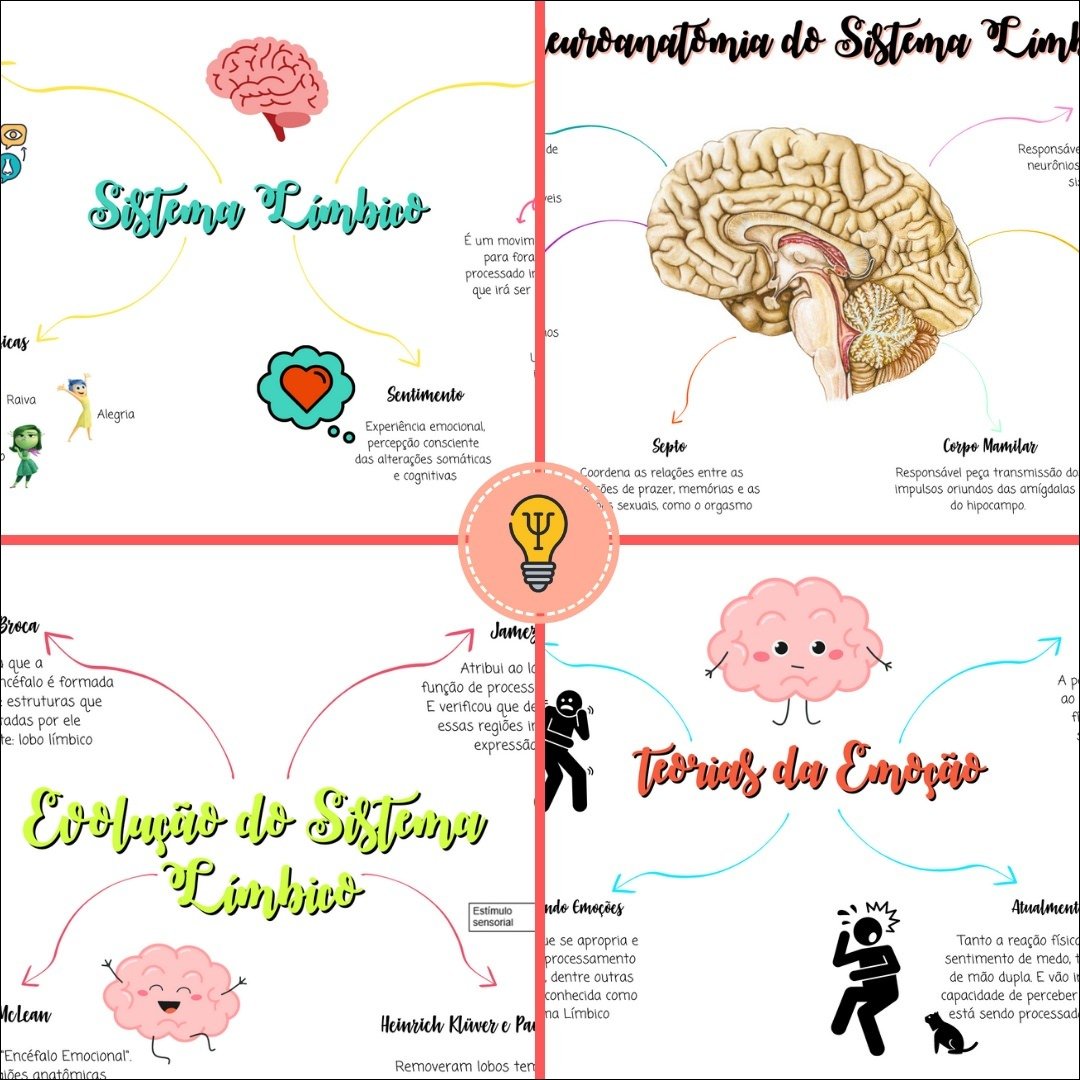 Compilação com os melhores mapas mentais, conceituais, infográficos, diagramas e resumos sobre sistema límbico.