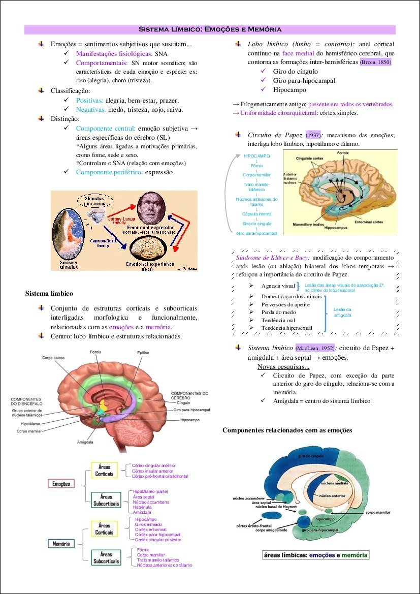 Resumo sobre sistema límbico