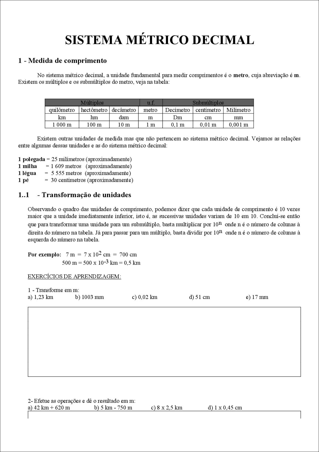 Resumo sobre sistema métrico decimal