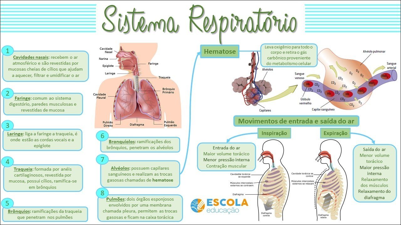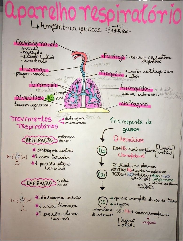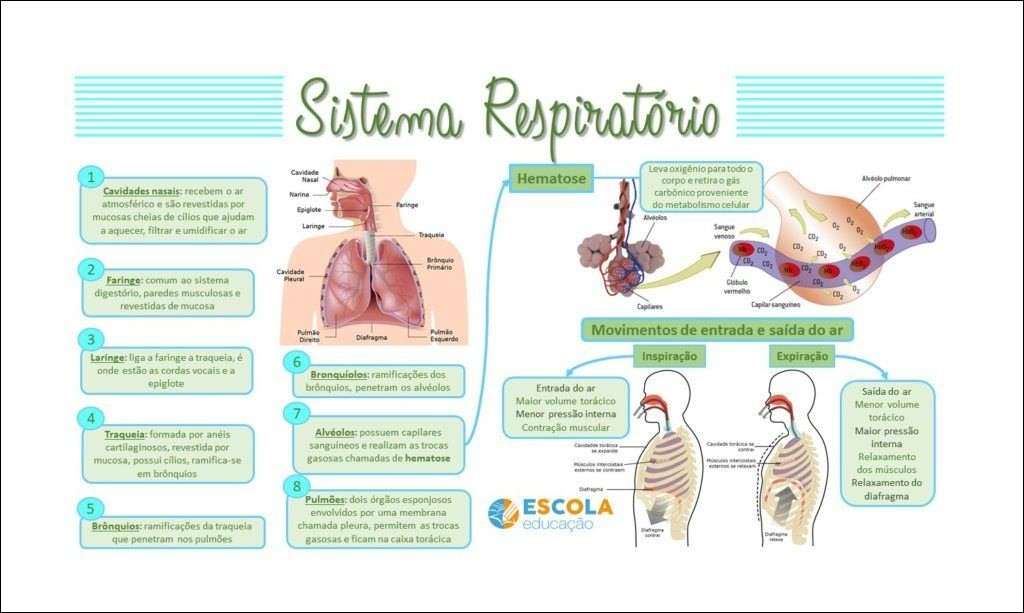 Compilação com os melhores mapas mentais, conceituais, infográficos, diagramas e resumos sobre sistema respiratório.