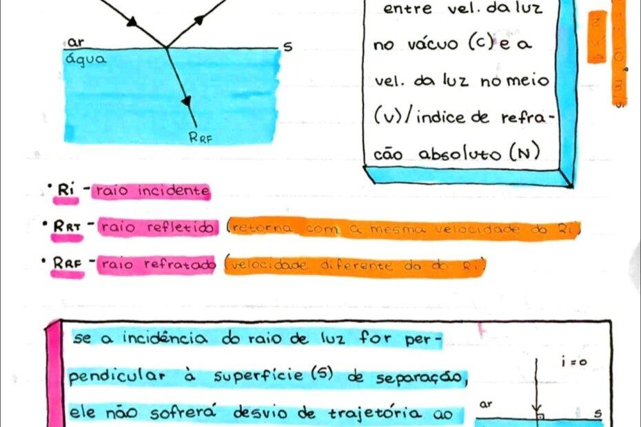 Compilação com os melhores mapas mentais, conceituais, infográficos, diagramas e resumos sobre refração da luz.